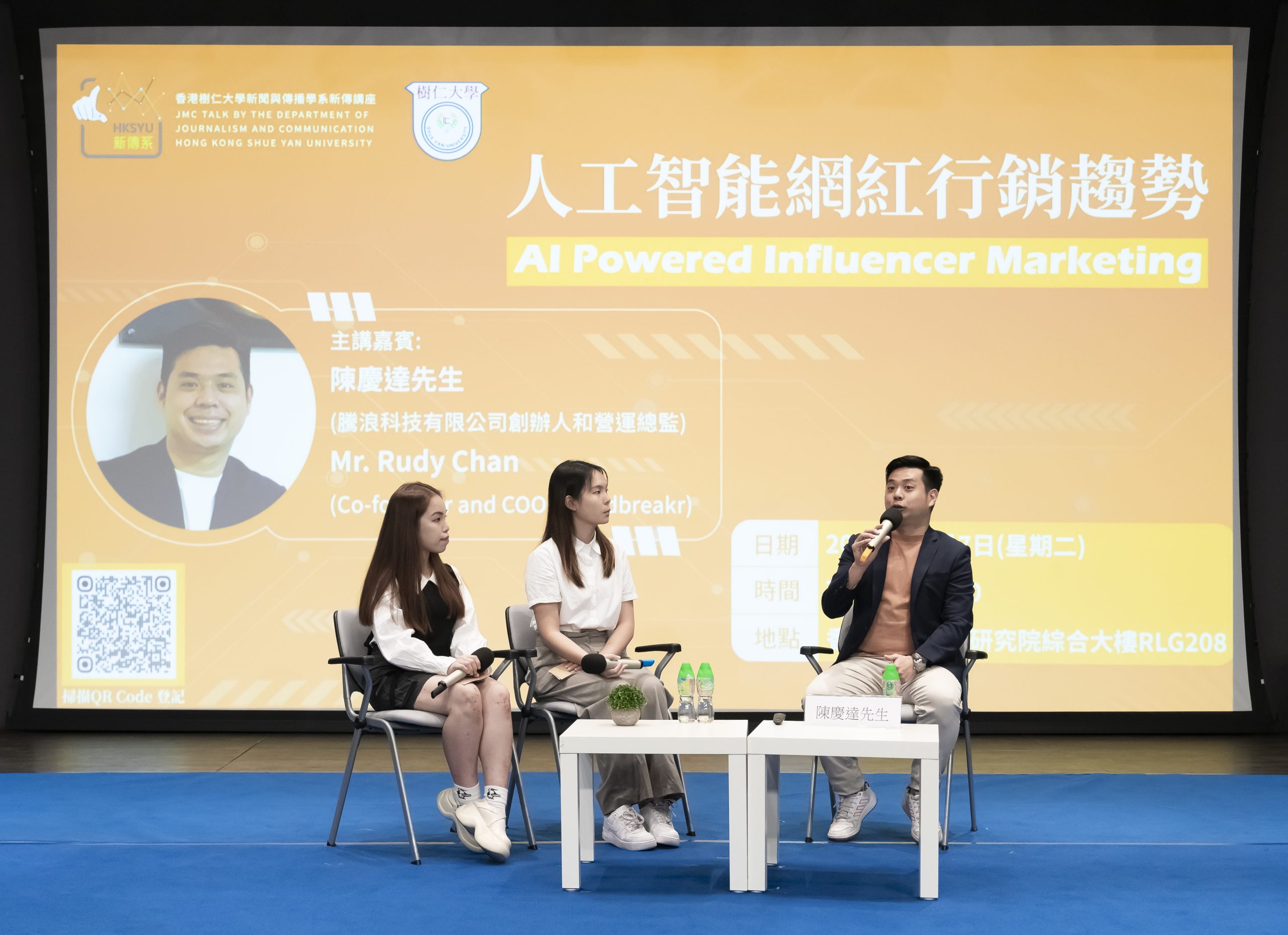 香港樹仁大學新聞與傳播學系舉行「新傳講座」,主題為「人工智能網紅行銷趨勢」。主講嘉賓、騰浪科技(Cloudbreakr)創辦人和營運總監陳慶達表示,社交媒體著重「內容分享」並衍生不同的興趣群組,「網紅」是當中的「內容創作者」,以個人的專業和見解去發放專長的內容。