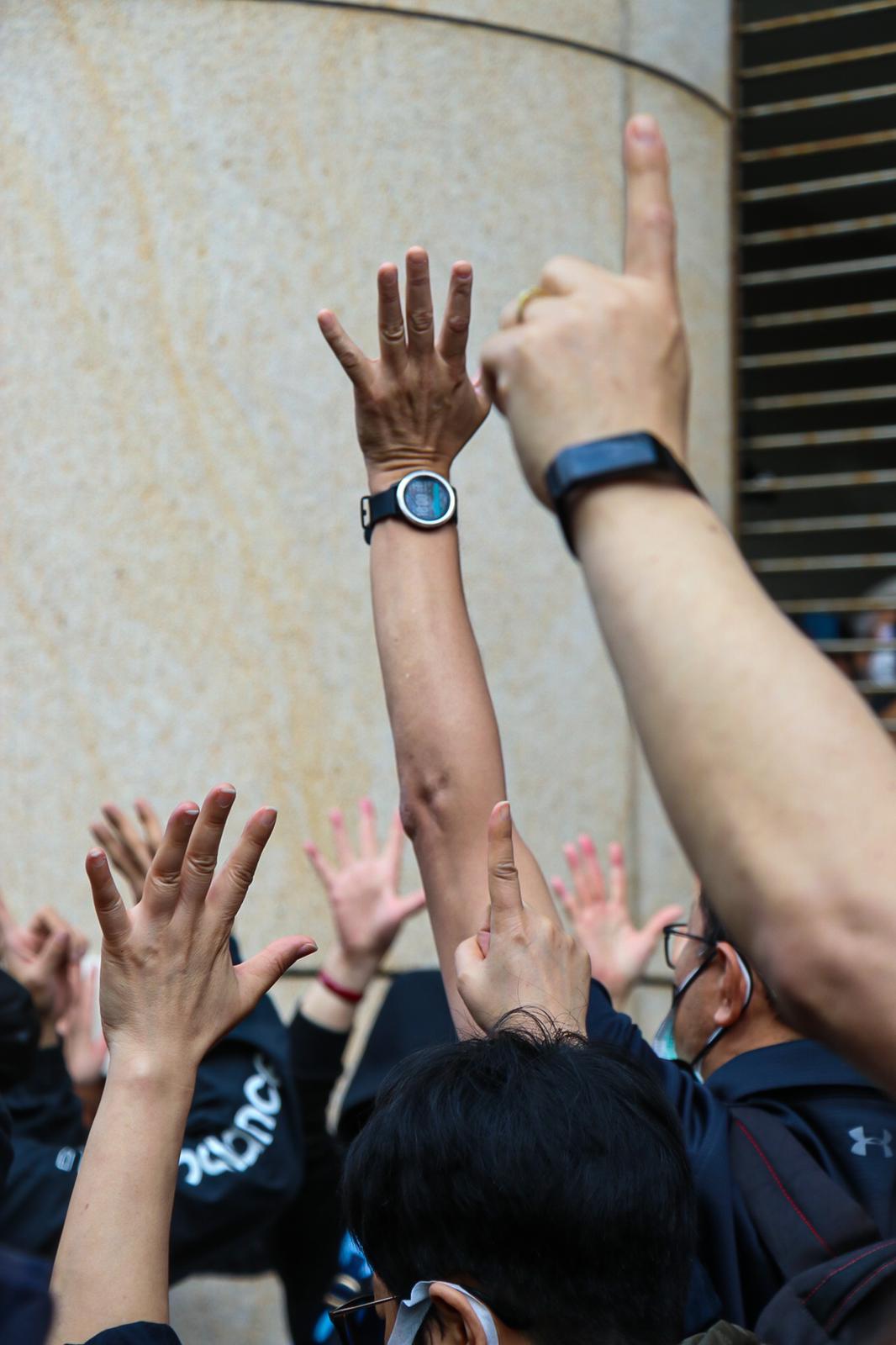 47名發起或參與去年民主派初選的人士被起訴「串謀顛覆國家政權罪」,通宵扣查,今早在西九龍裁判法院提堂。民間人權陣線召集人陳皓桓昨晚透過社交媒體Facebook呼籲今早九時半到法院外聲援,有逾200名市民到場。