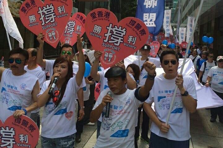 【本網訊】由李偲嫣任召集人的「正義聯盟」和「撐警大聯盟」今午在遮打花園集會,慶祝「撐警勝利」一周年。集會期間,李偲嫣再次扮演學生妹,表演話劇「黃屍毒」,又呼籲市民全家總動員,支持警隊。而另一邊廂,熱血公民及本土力量成員亦到場抗議,批評警方執法不公, 聲稱要「反黑警」。警方須架起鐵馬將不同陣形的示威者分隔,當「 撐警」團體離開遮打花園後, 熱血公民發起人黃洋達突然宣布集會結束,並呼籲參加者跟隨「 撐警」隊伍。然而,警方以有可能造成混亂為由, 拒絕熱血公民的集會隊伍離開示威區。其間 有人爬上花槽企圖越過警方防線,場面一度混亂,其間一人被指用腳踢警員,涉嫌襲警被拘捕。