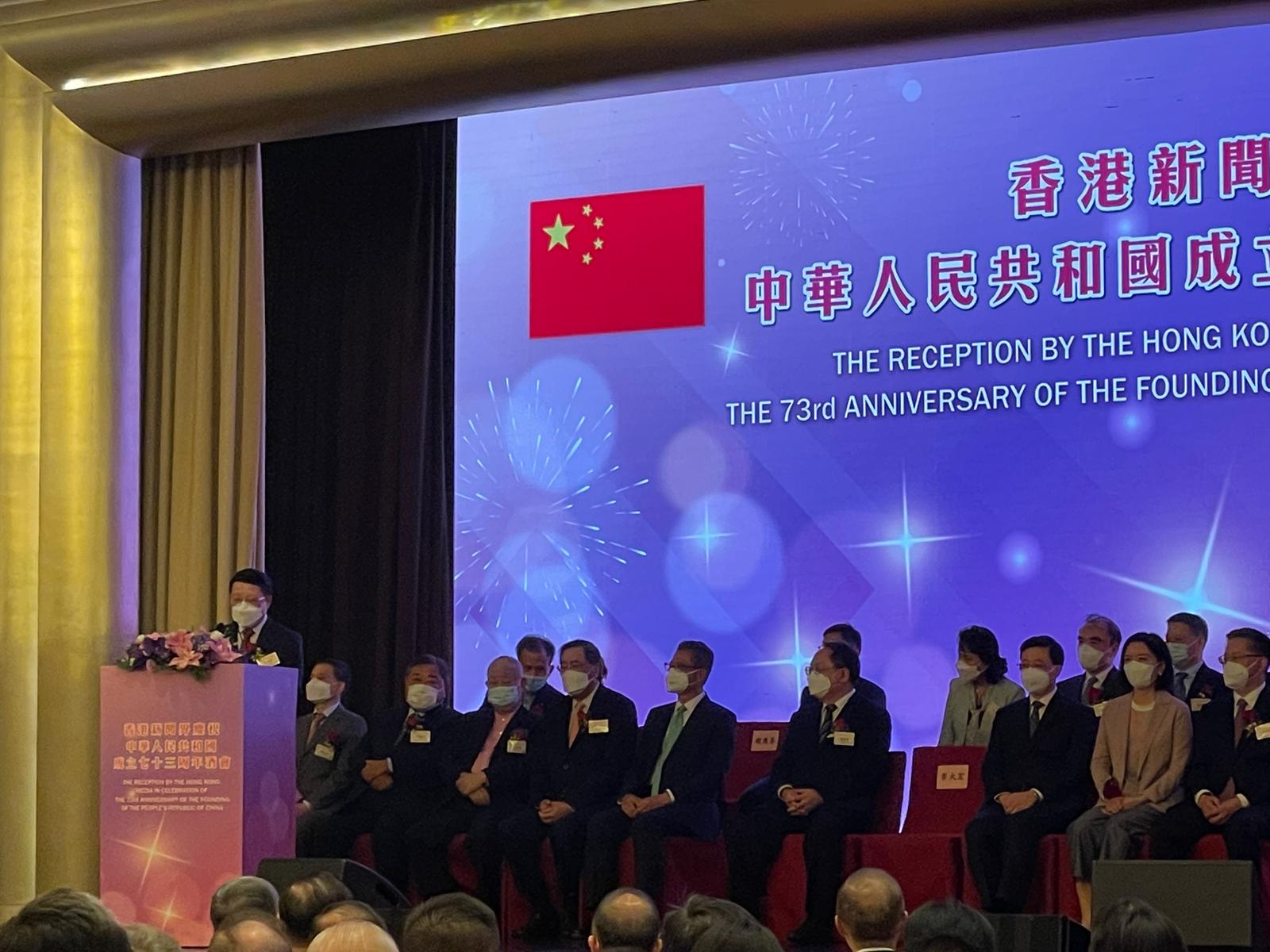 行政長官李家超在新聞界國慶酒會致辭表示,香港的獨特優勢是背靠祖國、聯通世界,必須鞏固國際金融、航運、貿易中心地位,期望本港新聞界充分發揮所長,努力講好香港故事,團結一致把香港最新發展及正確訊息告訴世界各地讀者、聽眾和觀眾。