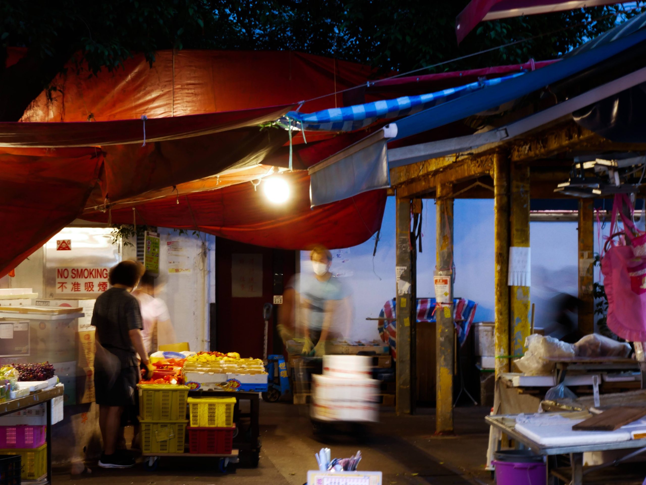 香港的街市分為領展旗下鮮活街市、政府街市和露天街市。露天街市承載數十年歷史,在經濟蓬勃,市道幻變的時代下,不屈不撓地生存下來。露天街市所剩無幾,小時候,外婆常常帶我到牛池灣街市「買餸」。小販的叫囂丶互相格價丶水果店前的黃貓丶活蹦活跳的鮮魚等等,都是伴我成長的片段。長大後細想,咦,街市清晨開舖的景象是怎樣的?從來只有早上和下午在街市遊逛,購物的「師奶」,或夜晚吃火鍋的「男人老狗」,沒有清晨靜靜觀察,陪伴檔販開舖的人。這次,讓我帶大家走入清晨六時至七時的街市,感受萬物初醒的時刻,這是城市以外的脈搏。