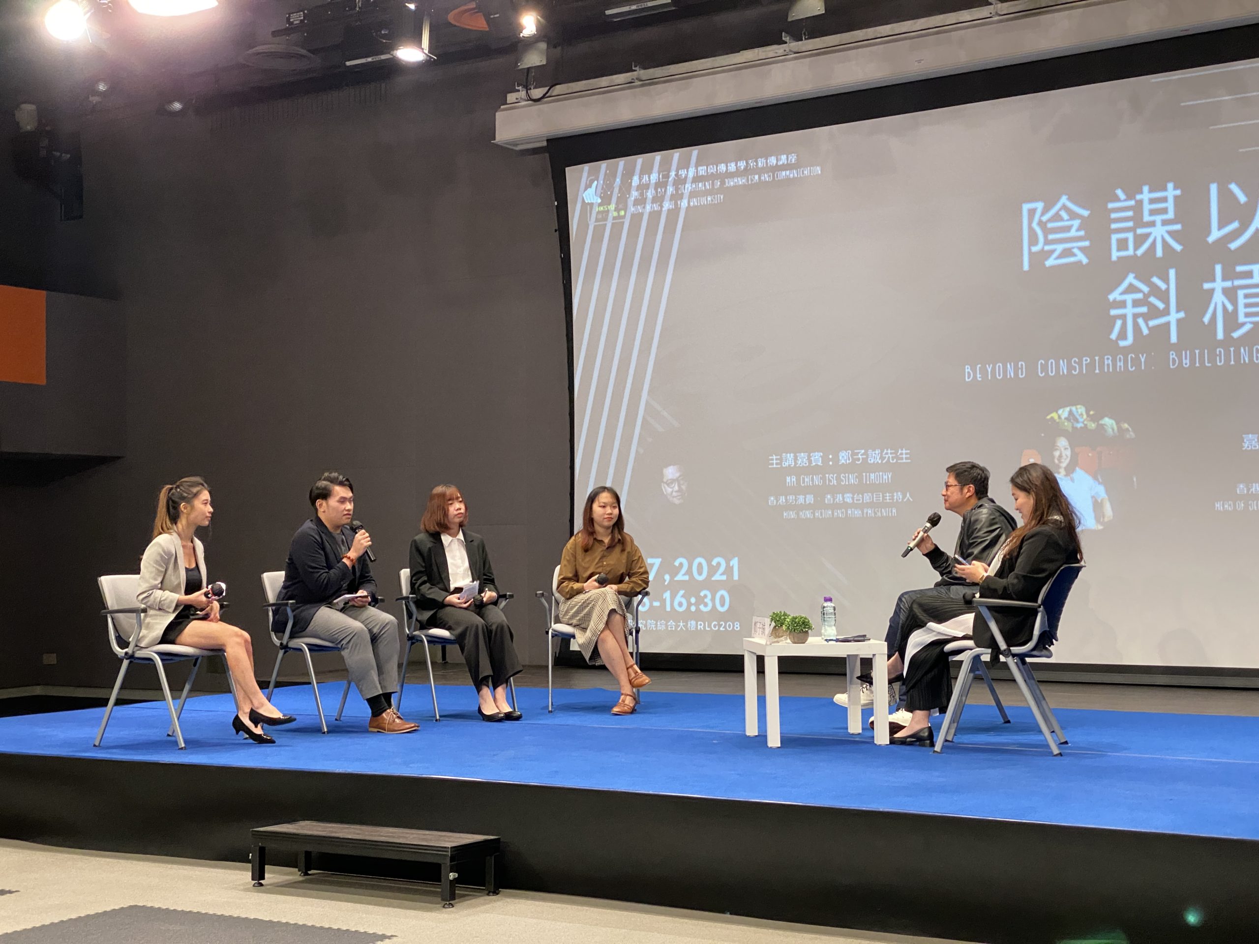 鄭子誠回應一眾學生主持提問,其中被問到如何看待「有鄭子誠的地方就有陰謀」。他說視之為正面標籤,認為是當年電視媒體的一種影響力,同時亦感謝網民「支持」把他變成「奸人代言人」,有人記得自己總算是一件好事。