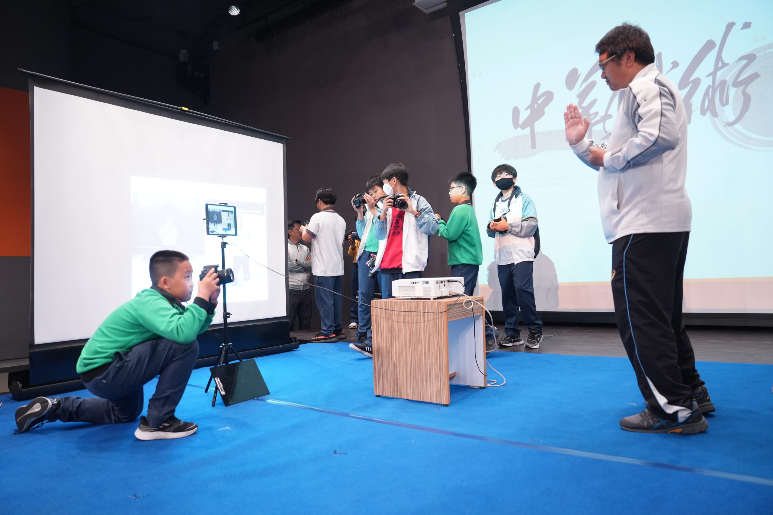 學生以「虛擬詠春學習系統」作為對象練習攝影(梁文熙攝)