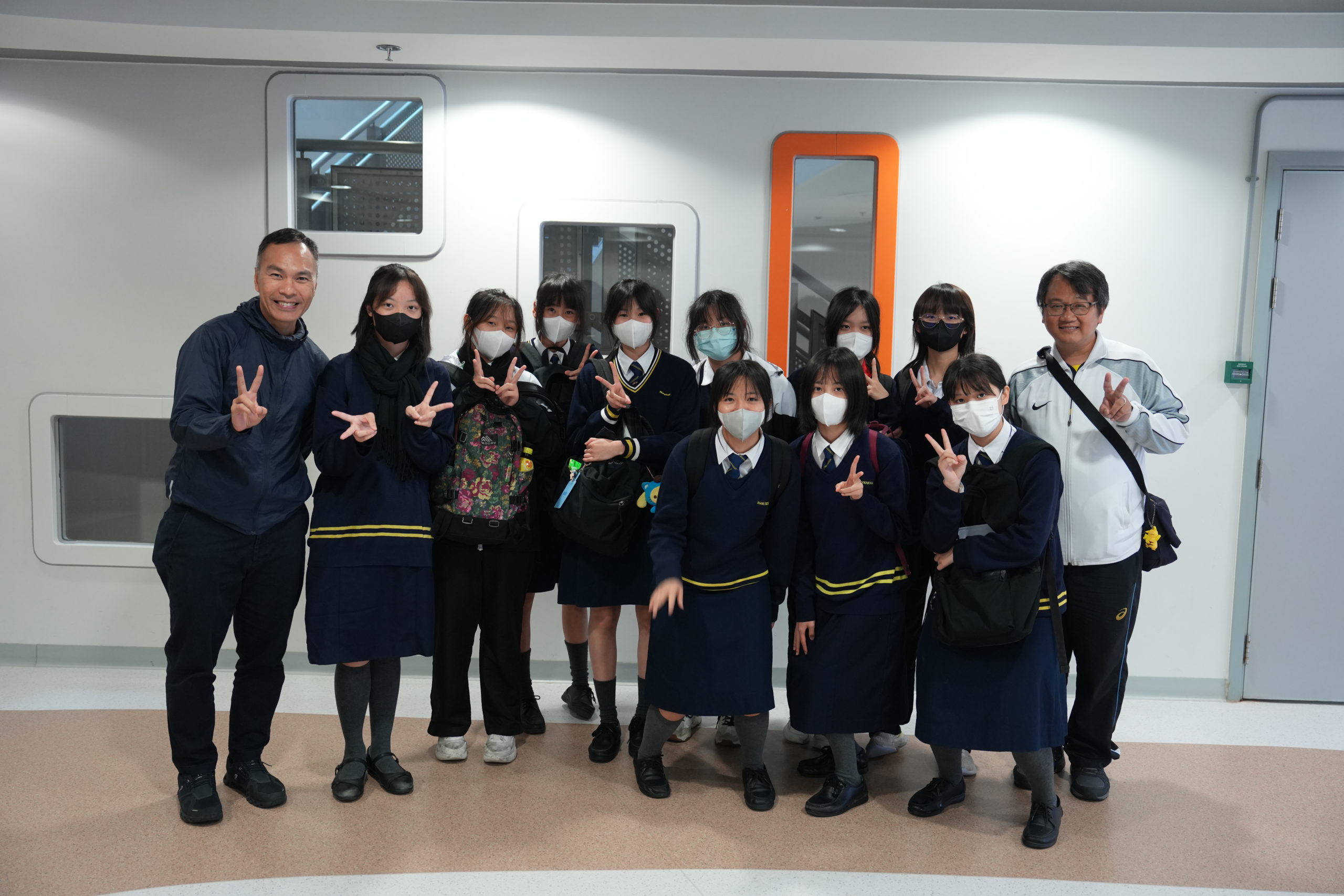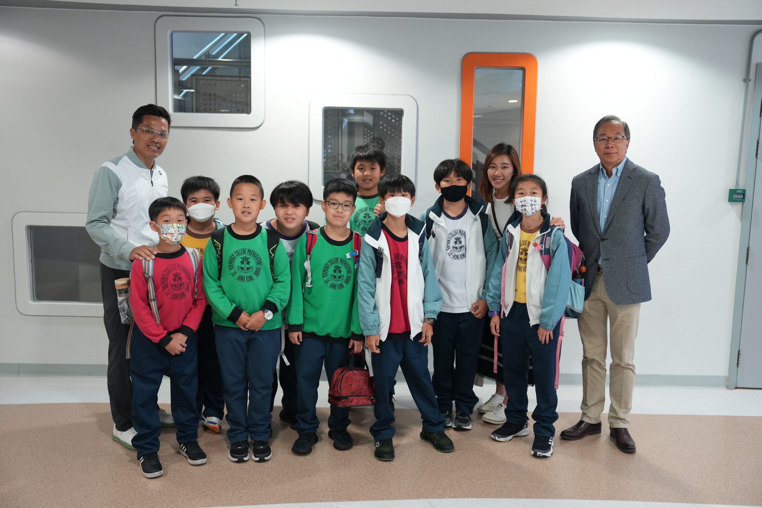 聖士提反書院附屬小學王勝桐副校長(右一)及師生。(梁文熙攝)