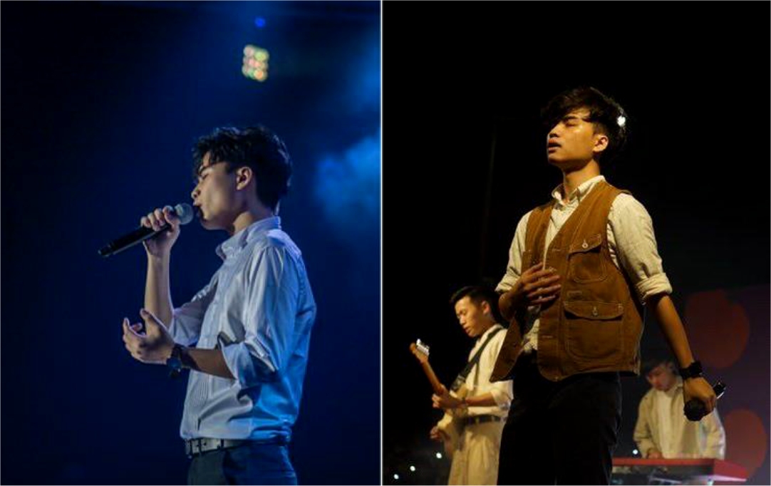 他稍微停頓,笑容更顯難為情。「回家後,面對着洗手間的四堵墻,我就在這個狹小又充滿回音的空間裏錄製人生第一首翻唱曲。後來樂團經紀人從團員聽到我的翻唱,認為我的聲線算不錯,便邀請我加入樂隊。」