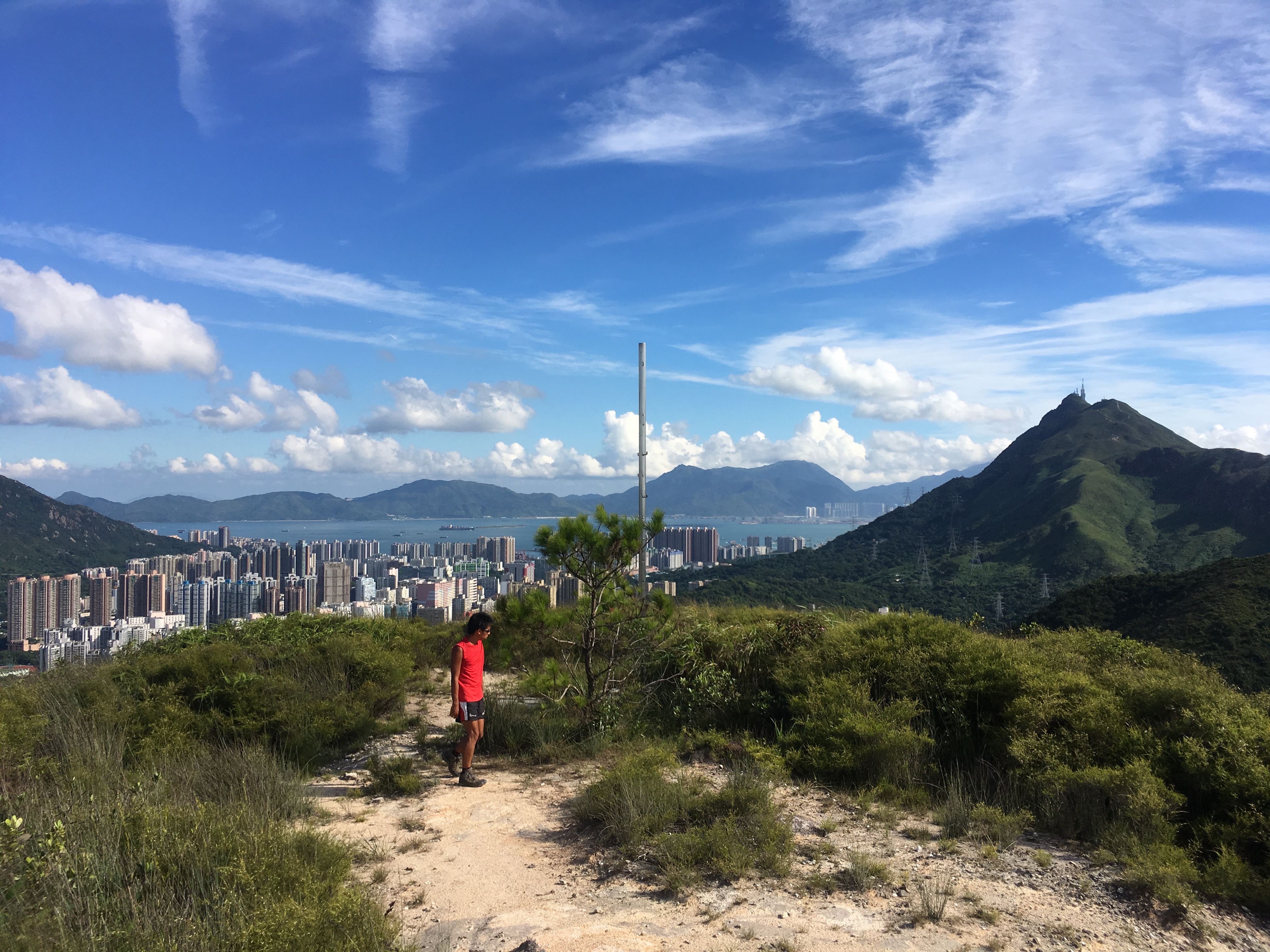轉去遠觀白泥,景色亦非常壯麗,例如選擇著名的「考牌山線」杯靈雙渡。「杯」乃「杯渡山」,「靈」指「靈渡山」。前者今稱「青山」,後者轉叫「圓頭山」。「雙渡」有連走之意,即由屯門青山直出元朗圓頭山。沿途西望,更可飽覽「青山操炮區」範圍,堆填區、白泥一帶!