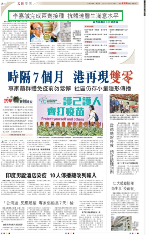 李嘉誠完成兩劑接種 抗體達醫生滿意水平