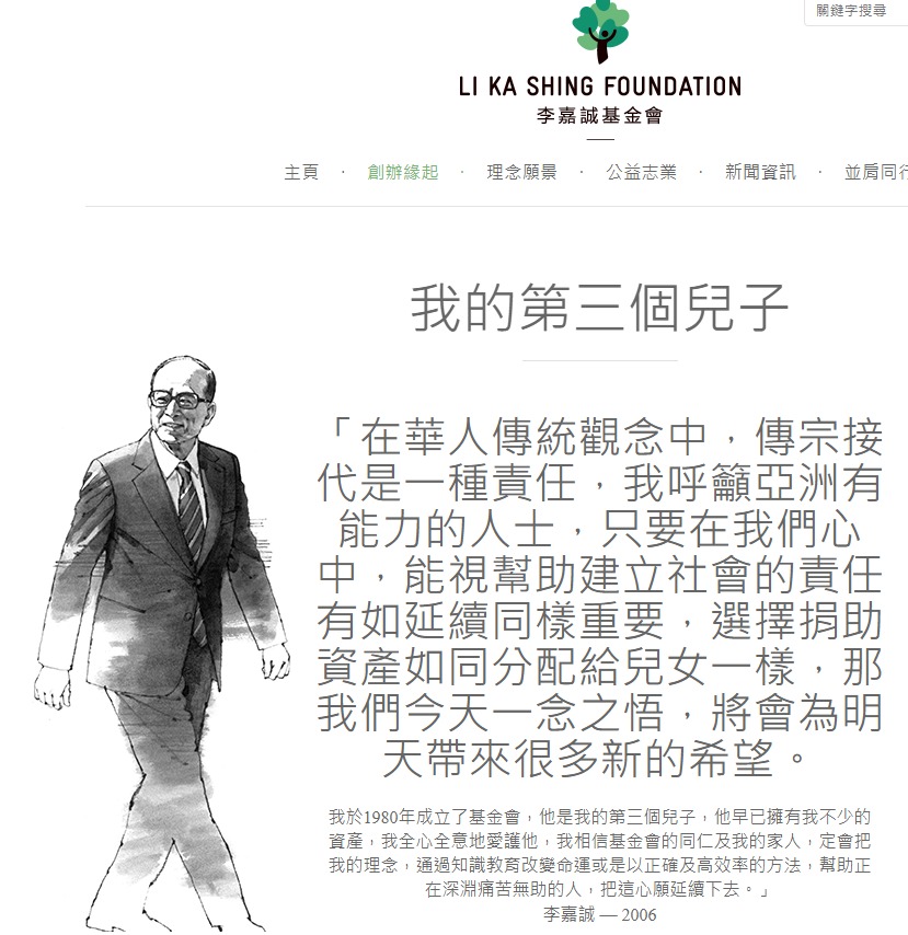 李嘉誠基金會專頁(筆者提供圖片)