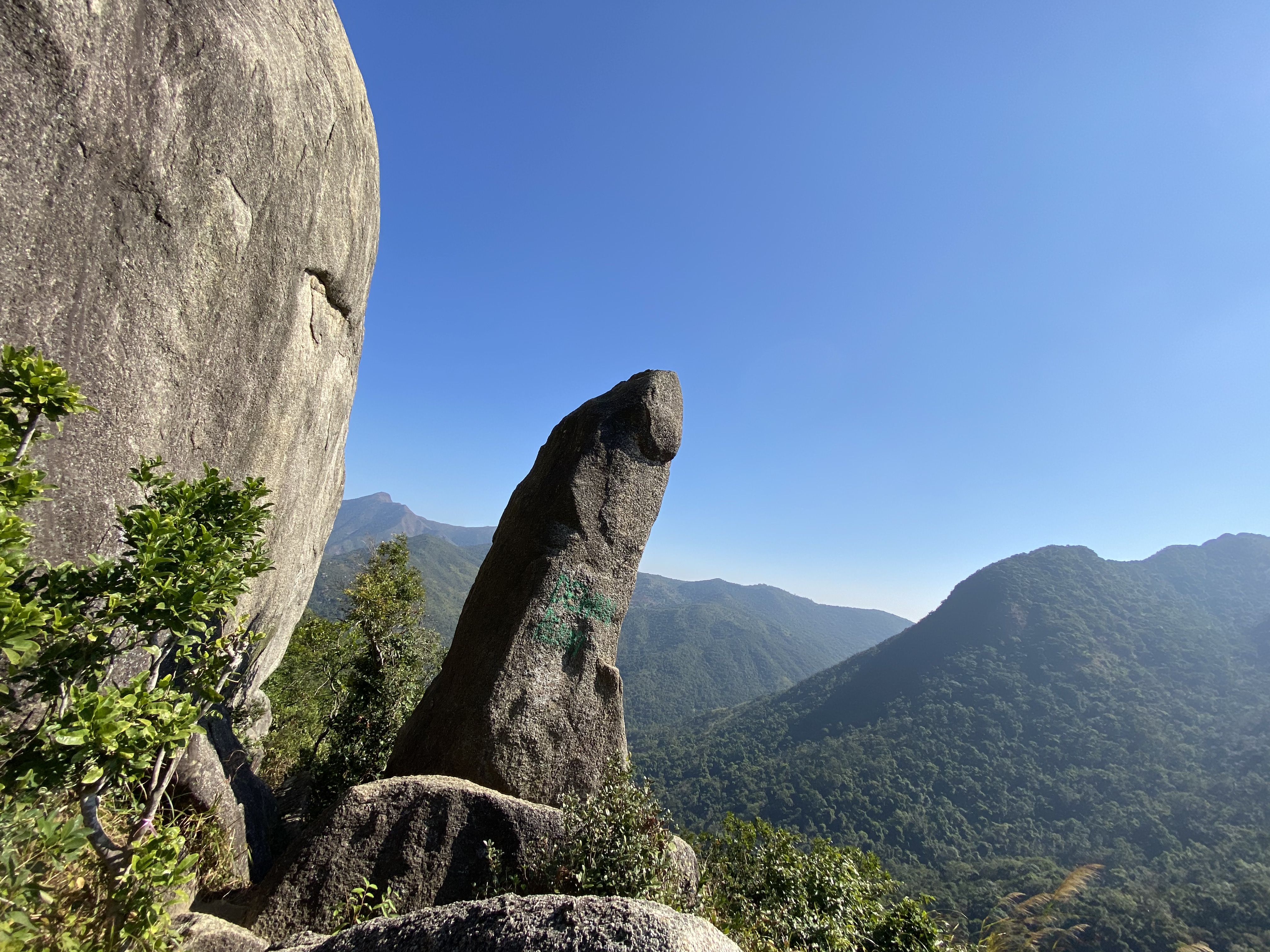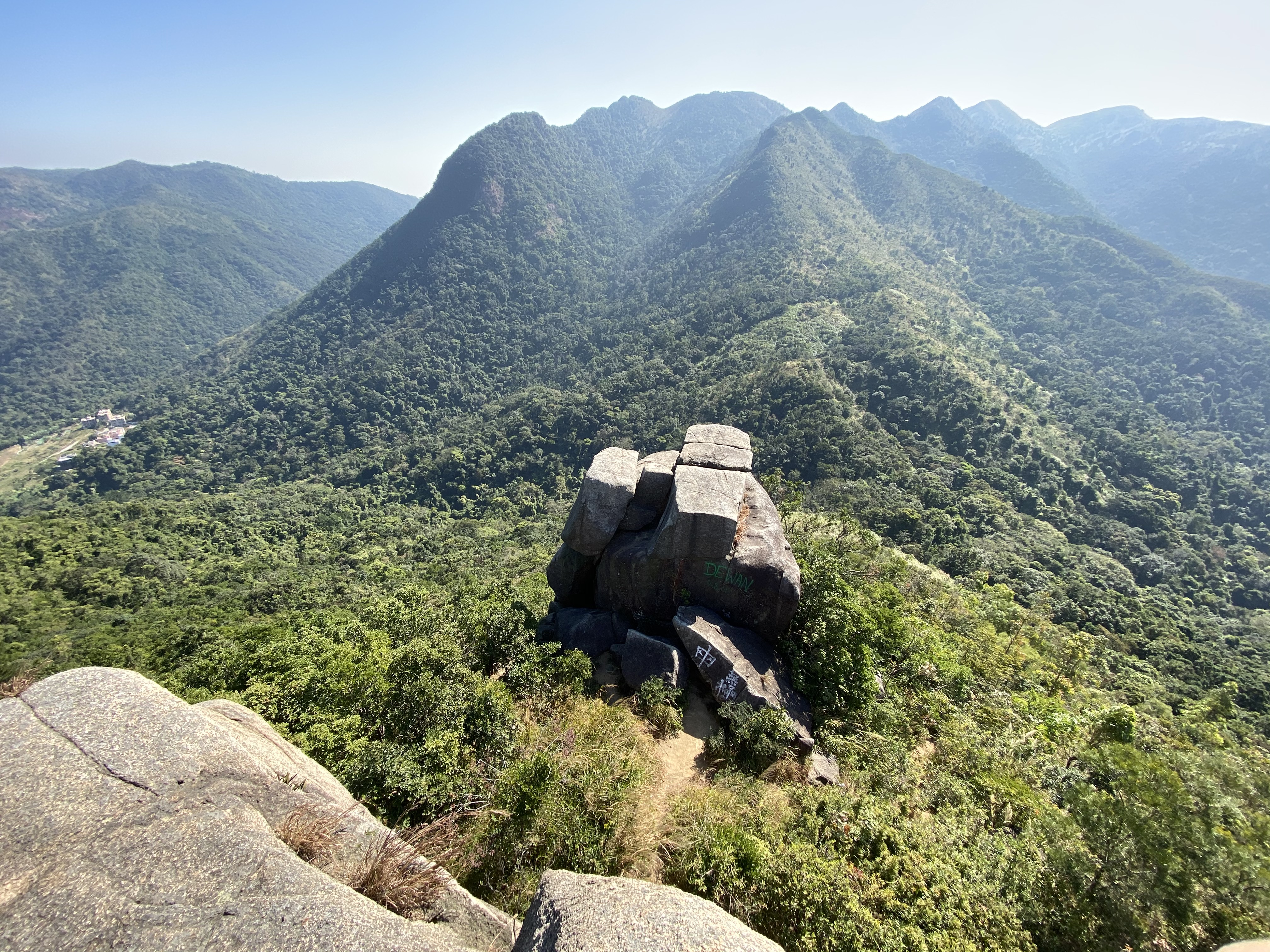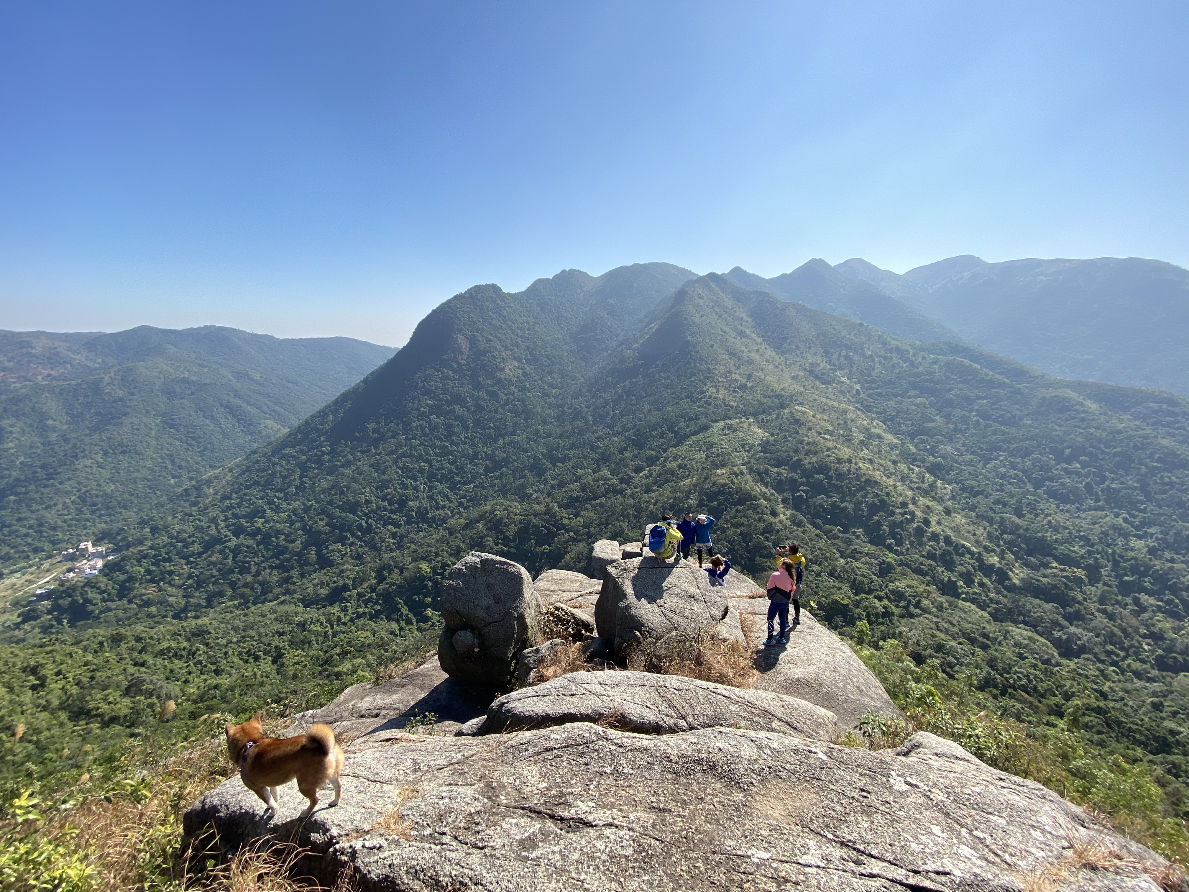 女婆山對望石芽山脈,鬱悶盡掃一空。在女婆山原路折返梅花古道,可選擇對面山線上水牛山、黃牛山,或返回黃泥頭巴士總站。