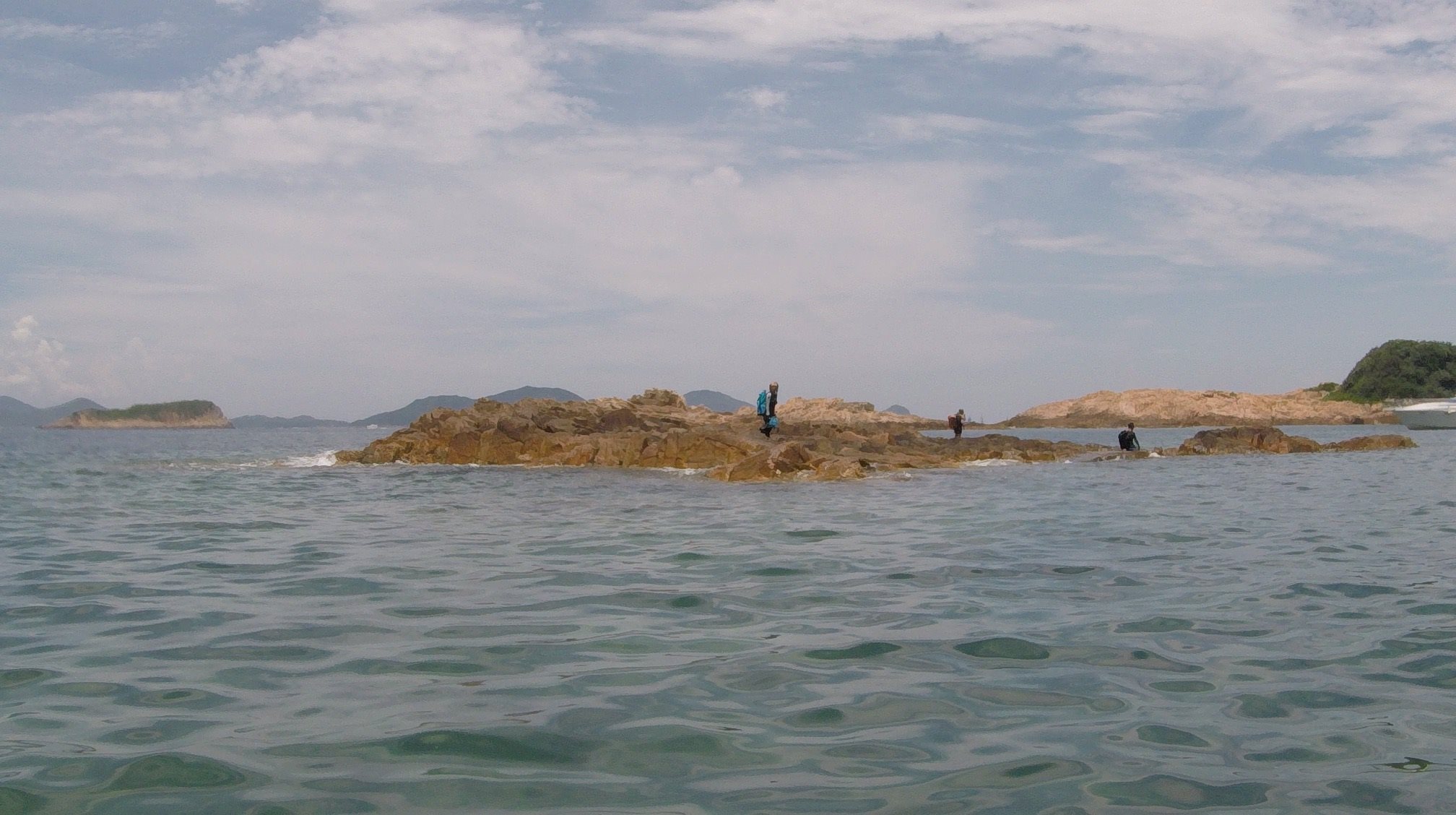 游上綠蛋島之前會先到白排,爬上一排排的礁石,拍攝美感視乎潮汐水位,假若水位上升,站在礁石上就有站在海中央一樣的效果。