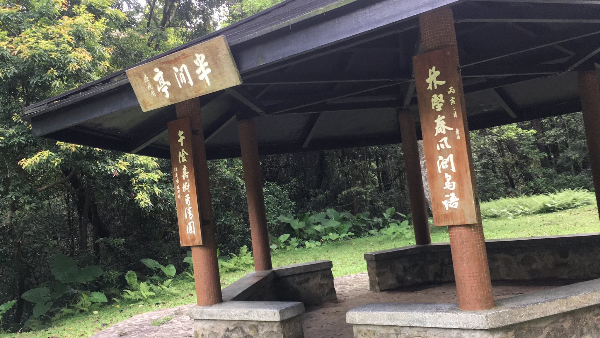 他補充,1986年,已故園林藝術家陳從周,在涼亭附近的石椅坐下觀賞樹的倒影,於是為涼亭命名以及題了一副對聯「林壑春風聞鳥語,午陰嘉樹看清園」。