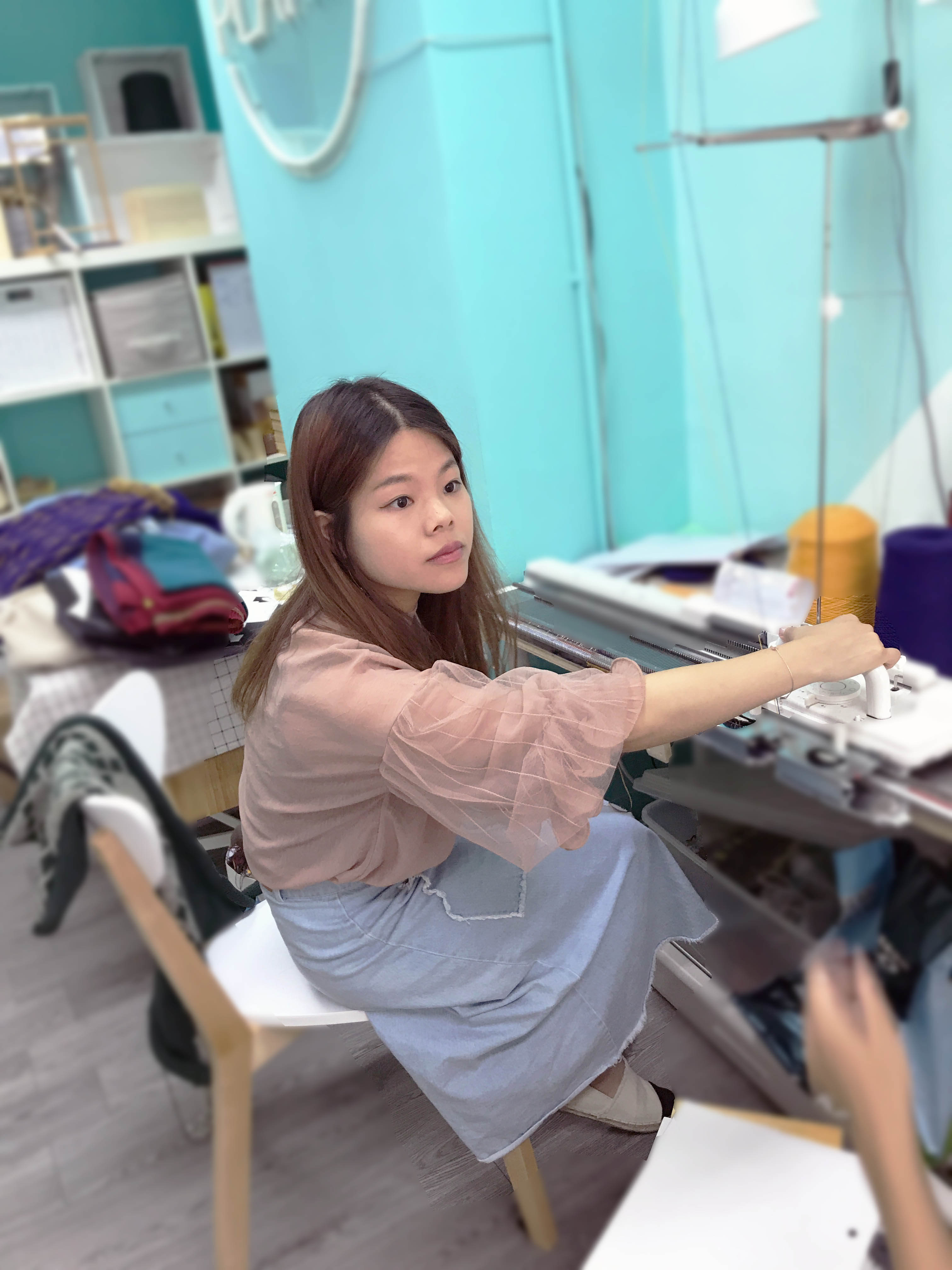 手作人Shu向記者示範縫紉機的使用方法,並講解如何在小天地編織不同款式的袋子。