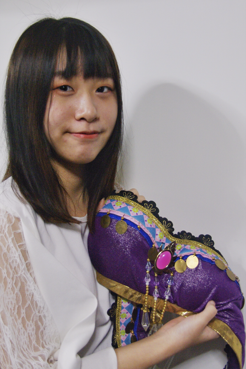 說起喜愛的角色,她拿出自己最愛的服飾:「我最喜歡的角色是《Love Live!》的『東條希』。這是她舞孃版本的服裝,非常華麗!」