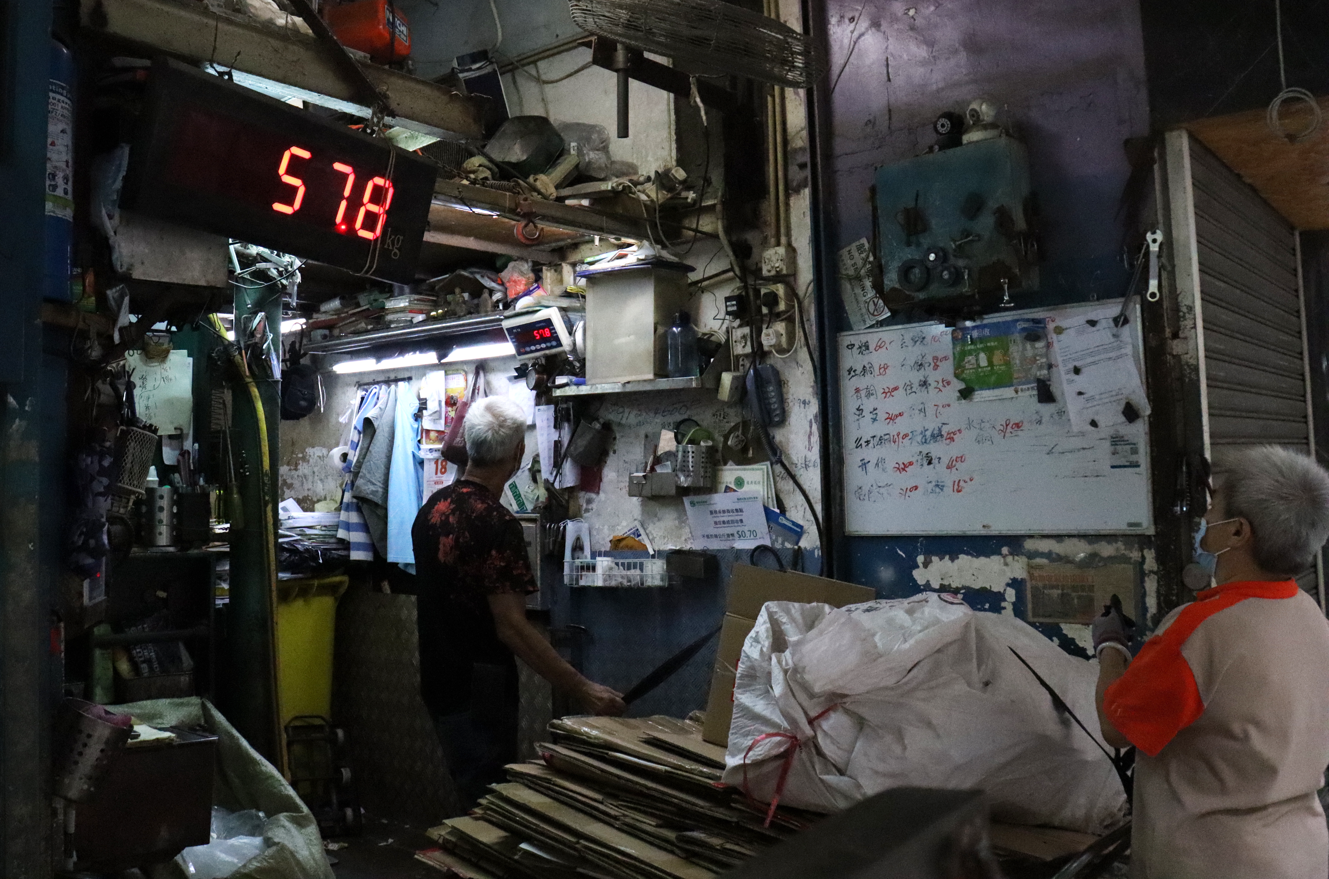 在卑路乍街的合記五金,上至電器,下至紙皮,都能夠讓街坊帶來回收並兌換成現金。營運超過十年,幾乎每一位街坊都能與員工談上幾句,而員工亦會因為了解一些「熟客」的生活狀況而在兌換時「湊個齊頭數」,多付他們一點錢,不起眼的小巷一下子溢出無限的溫暖。