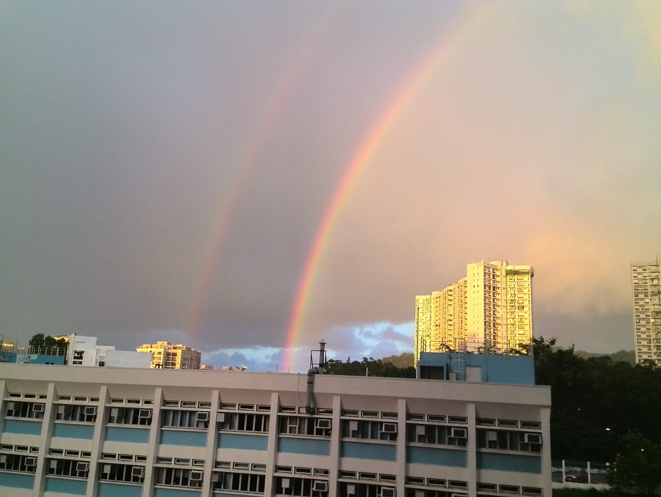 天文台表示,雙彩虹昨日傍晚在香港最少兩處地方出現,因此身處灣仔和大埔等地的市民都分別見到雙彩虹。