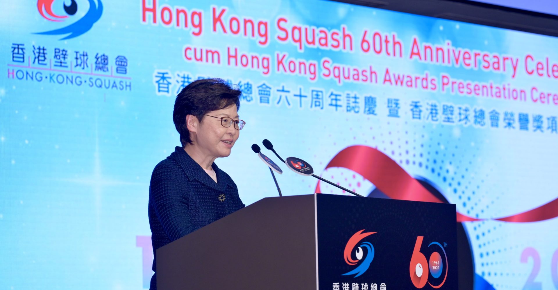 行政長官林鄭月娥(29日)出席香港壁球總會六十周年誌慶暨香港壁球總會榮譽獎項頒獎典禮致辭,她表示收到壁球總會主席邱達根的信,建議在2025年由粵港澳三地承辦的全國運動會,爭取將壁球納入比賽項目。