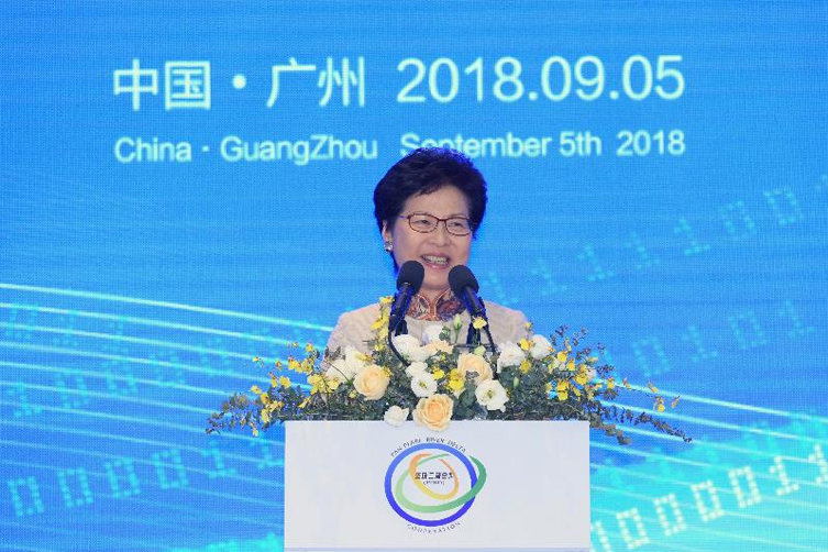 林鄭月娥指,高鐵開通後,西九龍站直達廣州南站只需47分鐘,連接全國四通八達的高鐵網絡,而西九龍站更可直達44個高鐵站,當中37個都在泛珠省區內。她亦指,粵港澳大灣區發展能為一帶一路建設提供有利的支撐,大灣區建設將提升區內市場的開放水平,而香港憑著一國兩制的優勢,可以為泛珠三角企業提供融資服務及專業人才,利用廣泛人脈和國際經驗,協助企業「走出去」,加強香港和大灣區,以至泛珠區域的互聯互通。