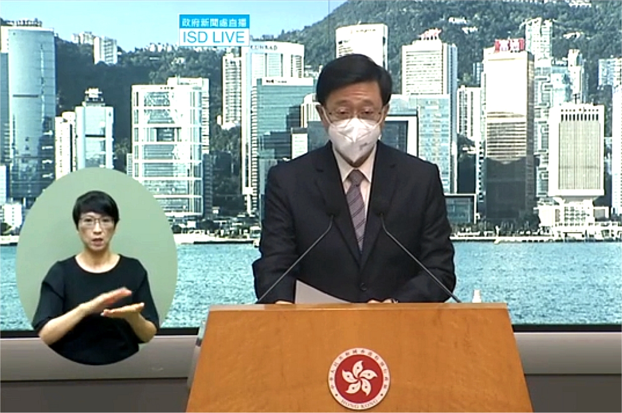 行政長官李家超晚上宣布,他已決定就《香港國安法》是否容許沒有本地全面執業資格的海外律師或大律師,參與處理危害國家安全的案件,尋求全國人民代表大會常務委員會解釋。