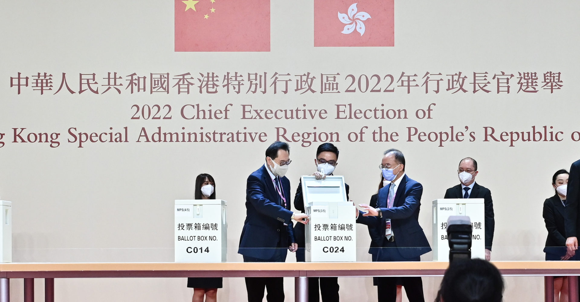 特首選舉的主投票站會使用電子選民登記冊系統發出選票,以期令發出選票工作更靈活、有效率和準確。選委須在發票櫃枱出示香港永久性居民身份證正本及按工作人員指示短暫拉開口罩,工作人員會使用電子選民登記冊平板電腦掃描選委的身份證,以核實身分,然後發出選票。投票結束後,所有票箱會被運送到中央點票站,由工作人員以人手點算選票。