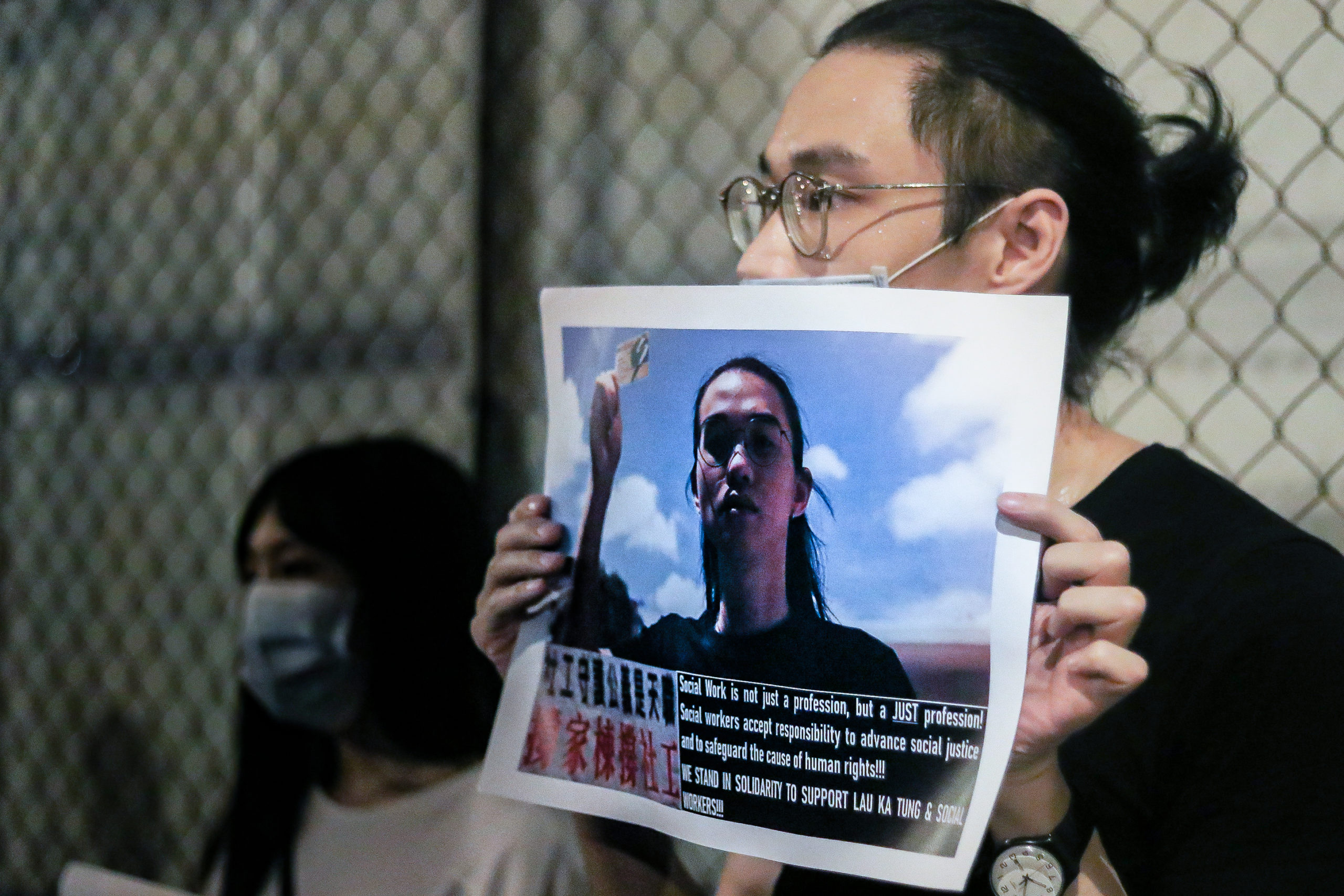香港社會工作者總工會(社總)於荔枝角收押所外舉辦「流水式集會」,聲援早前因阻差辦公罪成被判囚一年的註冊社工劉家棟。逾百名市民聚集在收押所對出行人路上,手持「撐家棟、撐手足、撐社工」等標語,集會中途被警方中斷。社總呼籲現場社工高舉註冊社工證,社總理事兼荃灣區議員陳劍琴強調,雖然社工證只價值400元,但背後代表著「守衛生命無價,捍衛公義無悔」的理念。活動期間,逾十名軍裝警員在附近戒備,後期更多次舉起藍旗,指在場人士違反限聚令及涉嫌非法集結。「社工復興運動」成員劉家棟被指去年7月27日的元朗警民衝突中,在警方作出驅散行動時,以身體擋在警員前面,早前阻差辦公罪成被判囚1年,被視為首位因反修例運動被囚的社工。