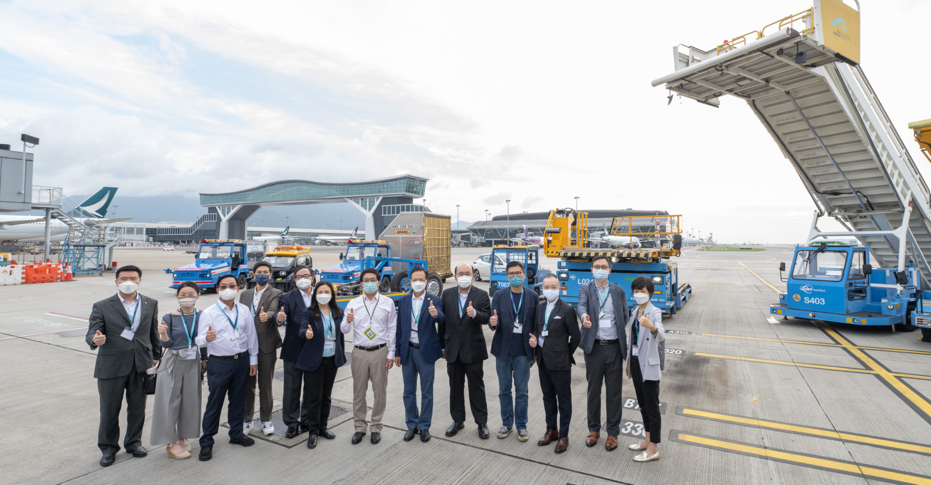 封面圖片:立法會發展智慧城巿事宜小組委員會(八月八日)到訪香港國際機場(機場),並與機管局的代表在機場禁區合照。