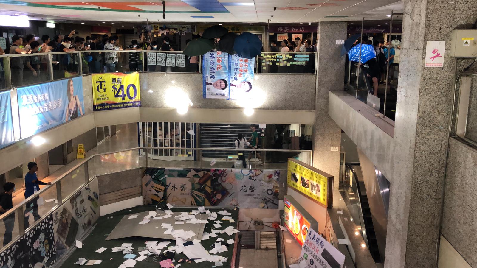 一批市民響應網上號召,在元朗站「白衣人」施襲事件翌日,到何君堯位於荃灣荃豐中心的議員辦事處抗議,期間有示威者損毀舖位並帶走電腦,辦事處文件則散落舖外及商場平台。