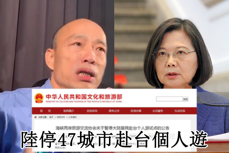台灣總統蔡英文及高雄市市長兼國民黨總統參選人韓國瑜,各自就中華人民共和國文化和旅遊部暫停47個城市大陸居民赴台個人遊試點的決策作公開回應。蔡英文批評此決策在戰略上是「很大的錯誤」,揚言當局已做好萬全準備,開拓國際客源、轉型升級;韓國瑜則表示感到非常錯愕,指民進黨不代表全部台灣人民,希望中國內地能持續開放自由行,讓兩岸和平交流、互利雙贏。