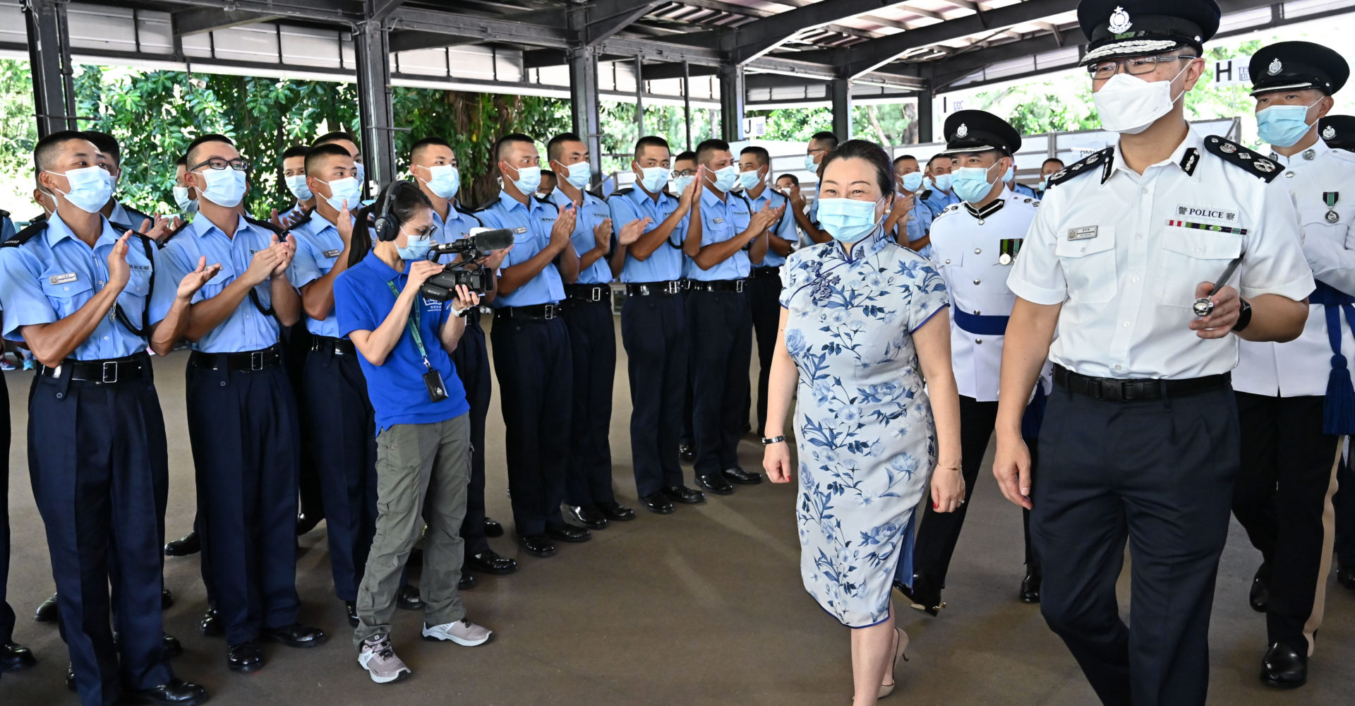 鄭若驊檢閱33名見習督察及116名學警,勉勵學員要以無比的勇氣和堅毅的意志迎難以上,砥礪前行,共同實踐警隊的抱負,使香港繼續是世界上其中一個最安全及穩定的社會。
