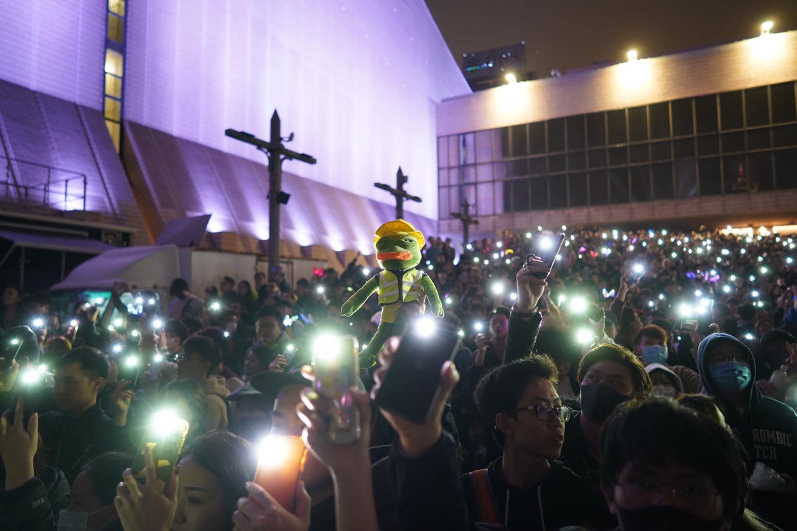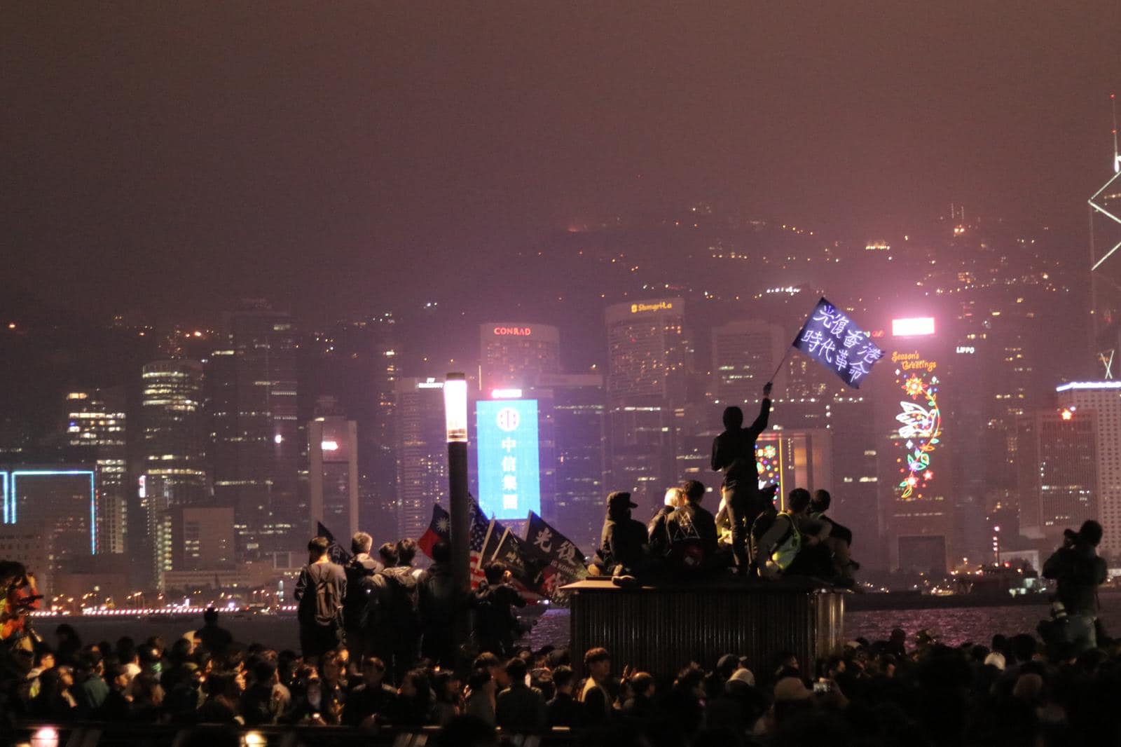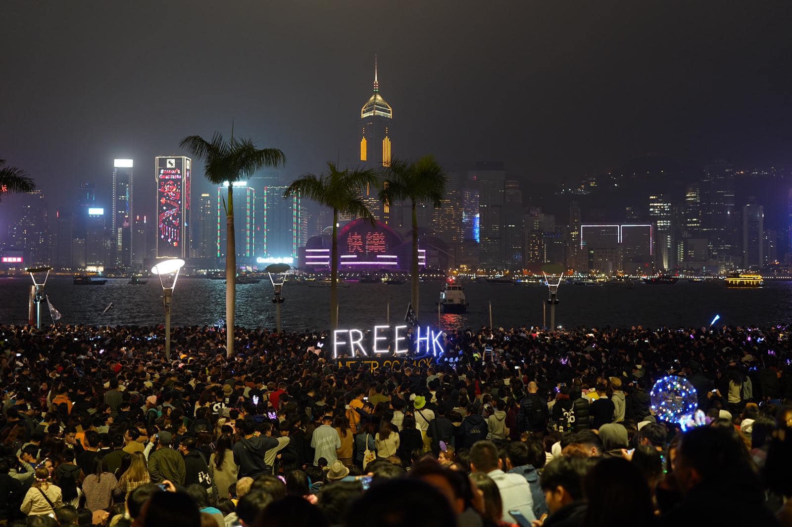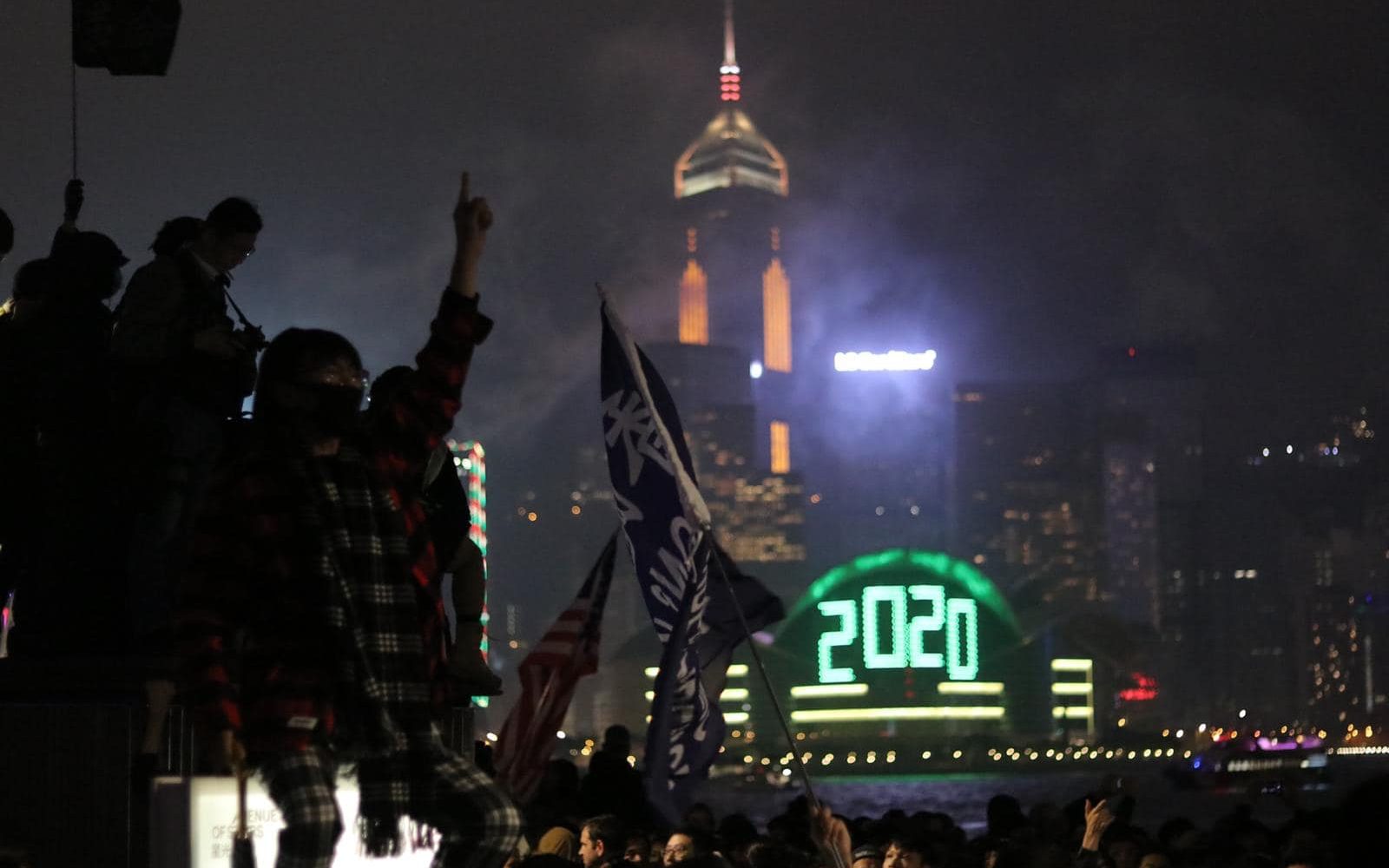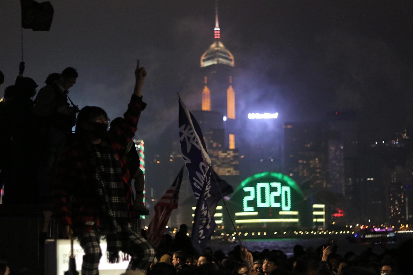 反修例示威衝突持續半年,旅遊發展局早前宣布為免有大量人群聚集,決定取消除夕煙花匯演,改為上演升級版「幻彩詠香江」,維港兩旁部分大廈天台發放煙火,香港會議展覽中心外牆設立大型倒數鐘。在尖沙咀海旁,仍然有大批市民在倒數迎接新年。