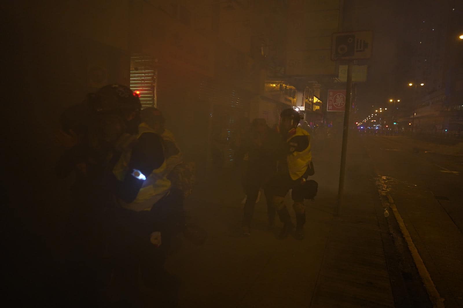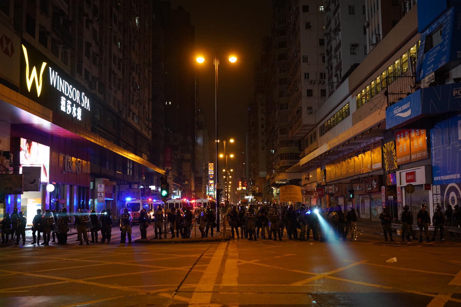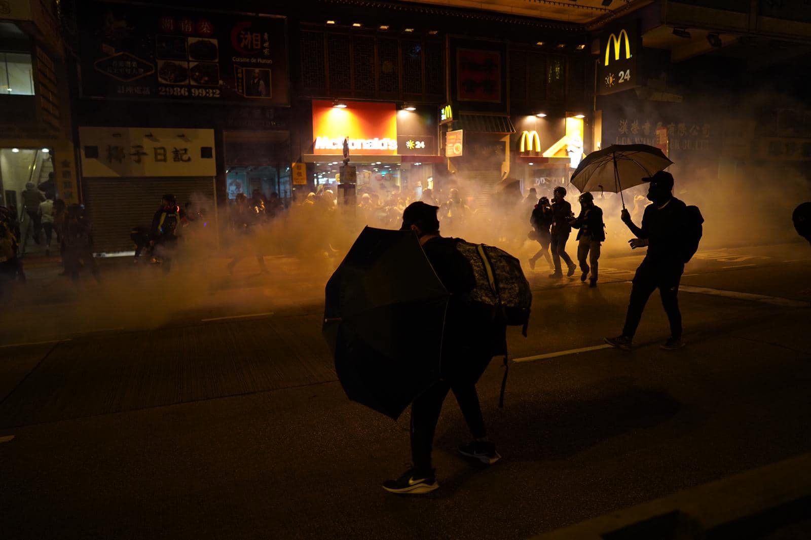 有示威者焚燒雜物,警方沿彌敦道向油麻地推進,施放催淚彈驅散人群。