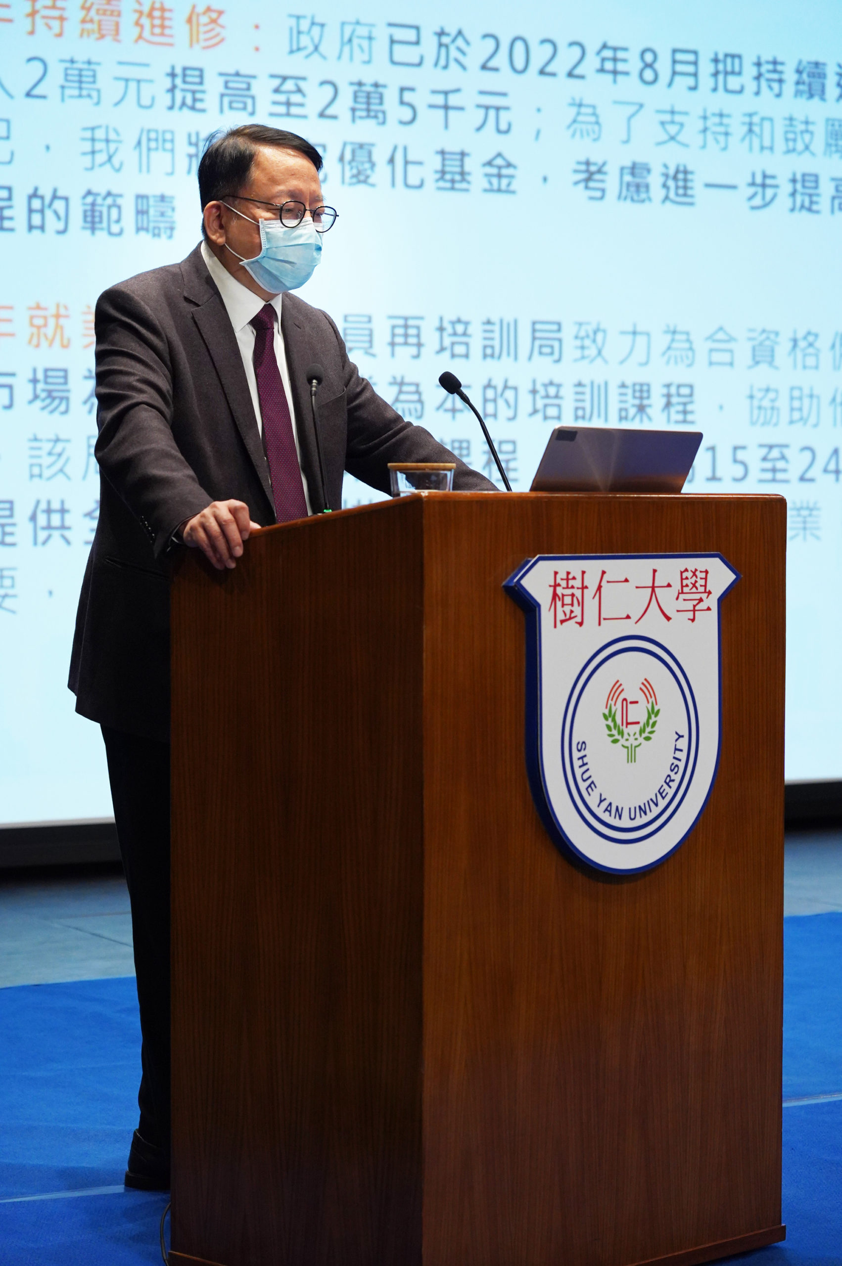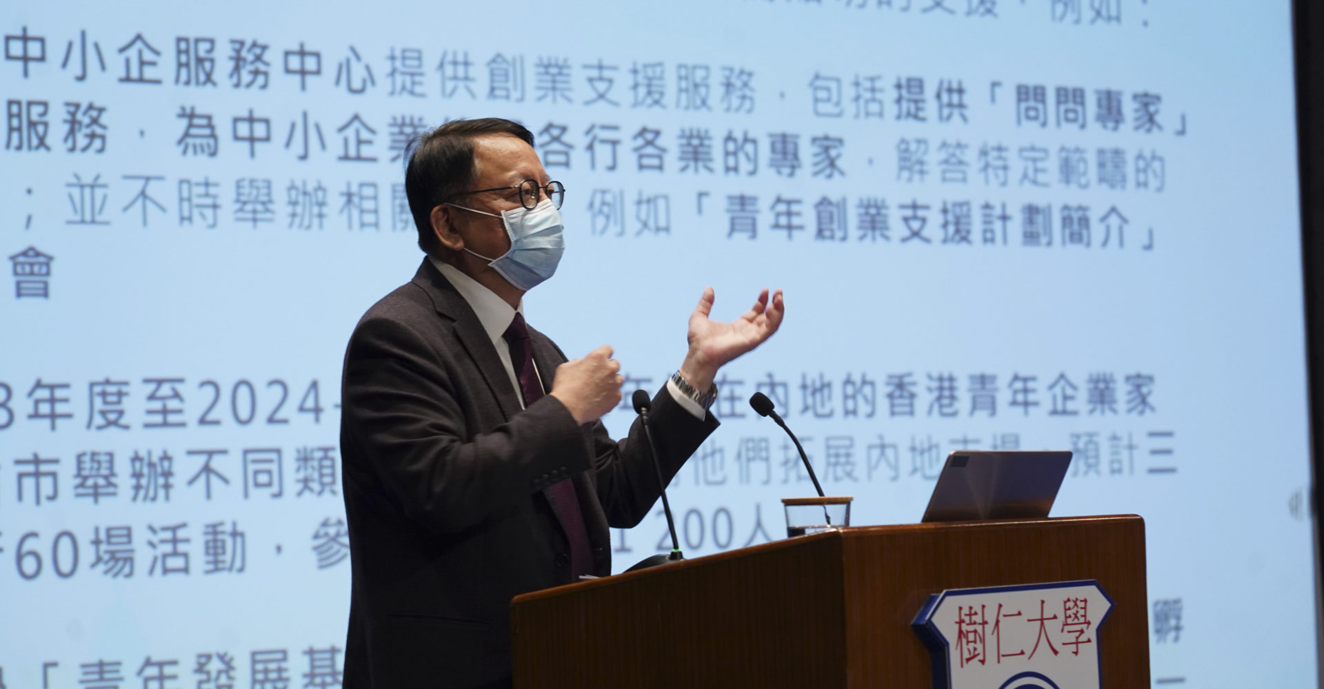 政務司司長陳國基出席香港樹仁大學新聞與傳播學系的「新傳講座」,分享對《青年發展藍圖》的看法。他表示需要培育愛國愛港及具備世界視野的新一代,對青年抱有積極態度,強化青年主人翁意識,與時並進回應青年的需要。