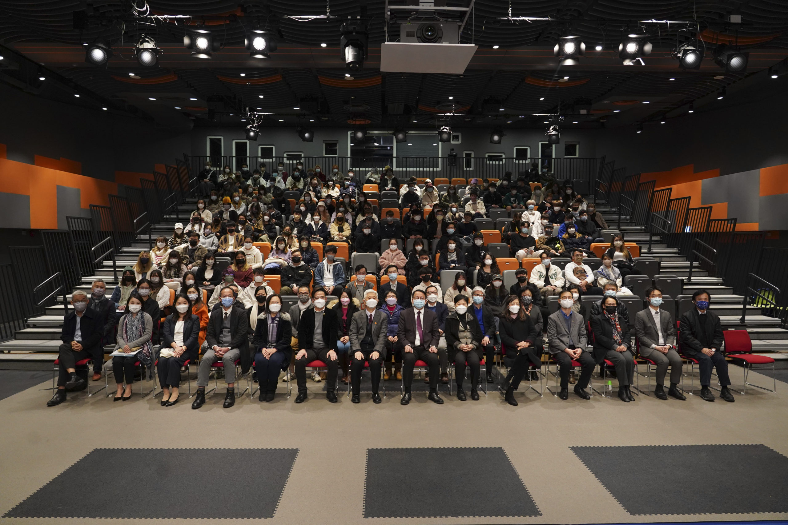 政務司司長陳國基(左八)與仁大管理層和師生合照。