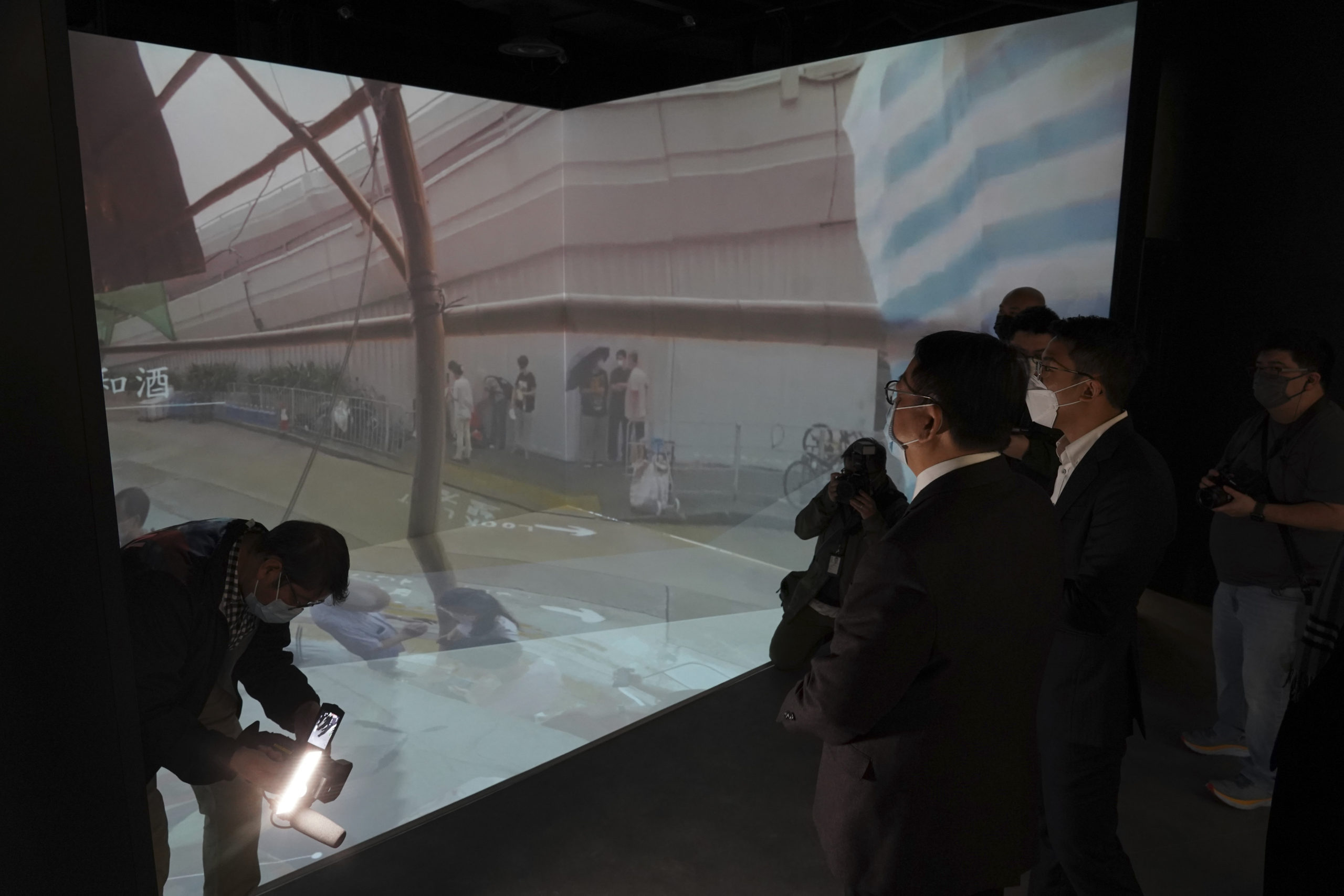 政務司司長陳國基觀賞本港首個以國家級非物質文化遺產為主題的虛擬博物館,體驗真實社區內的盂蘭文化相關場景。