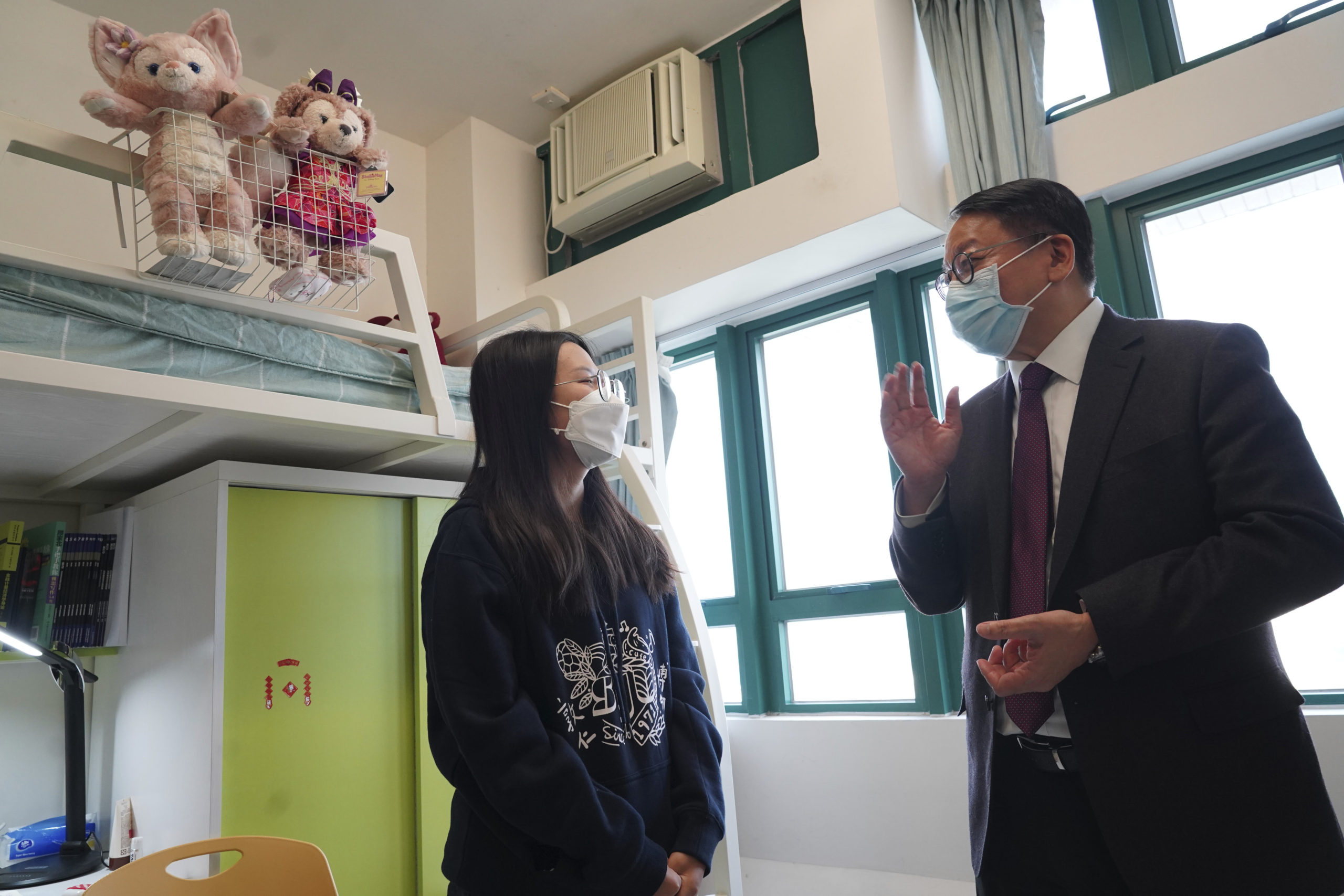 政務司司長陳國基參觀仁大學生宿舍的公共空間