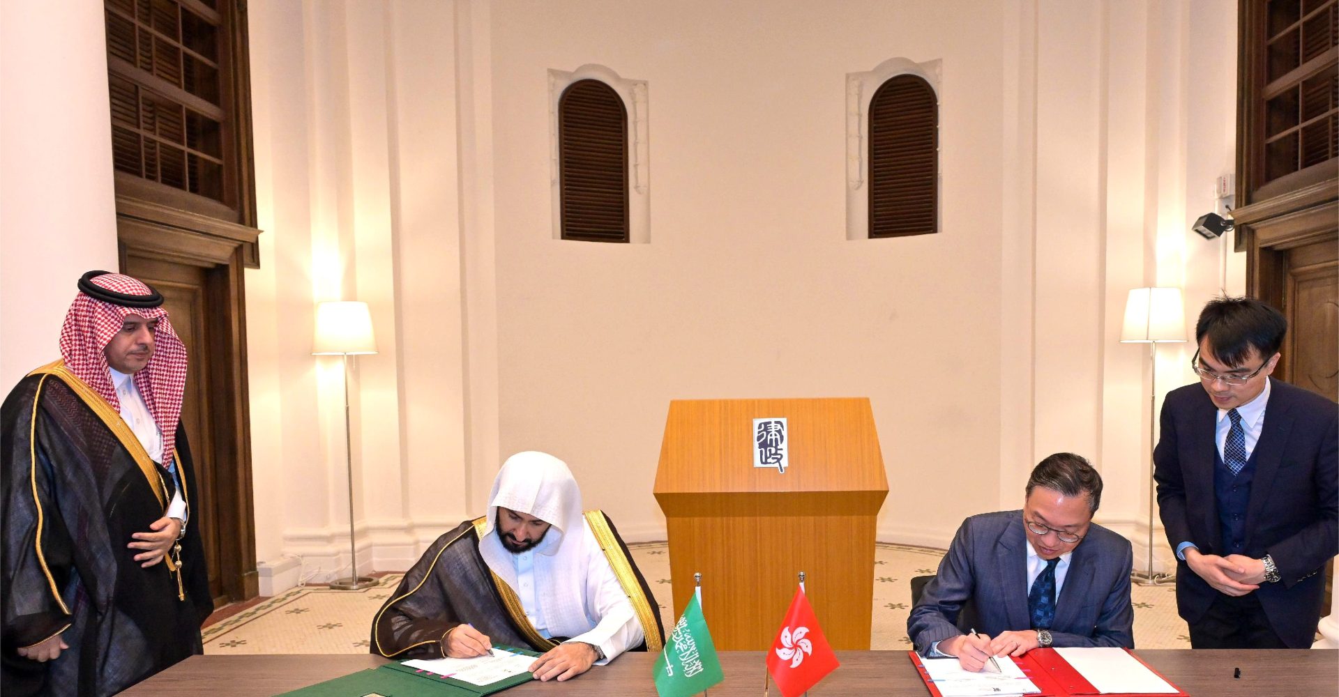 簽署儀式在位於中環上海商業銀行大廈23樓的香港法律樞紐(Hong Kong Legal Hub)舉行,由律政司司長林定國和沙特阿拉伯王國司法大臣Waleed Mohammed Alsmani博士共同簽署。