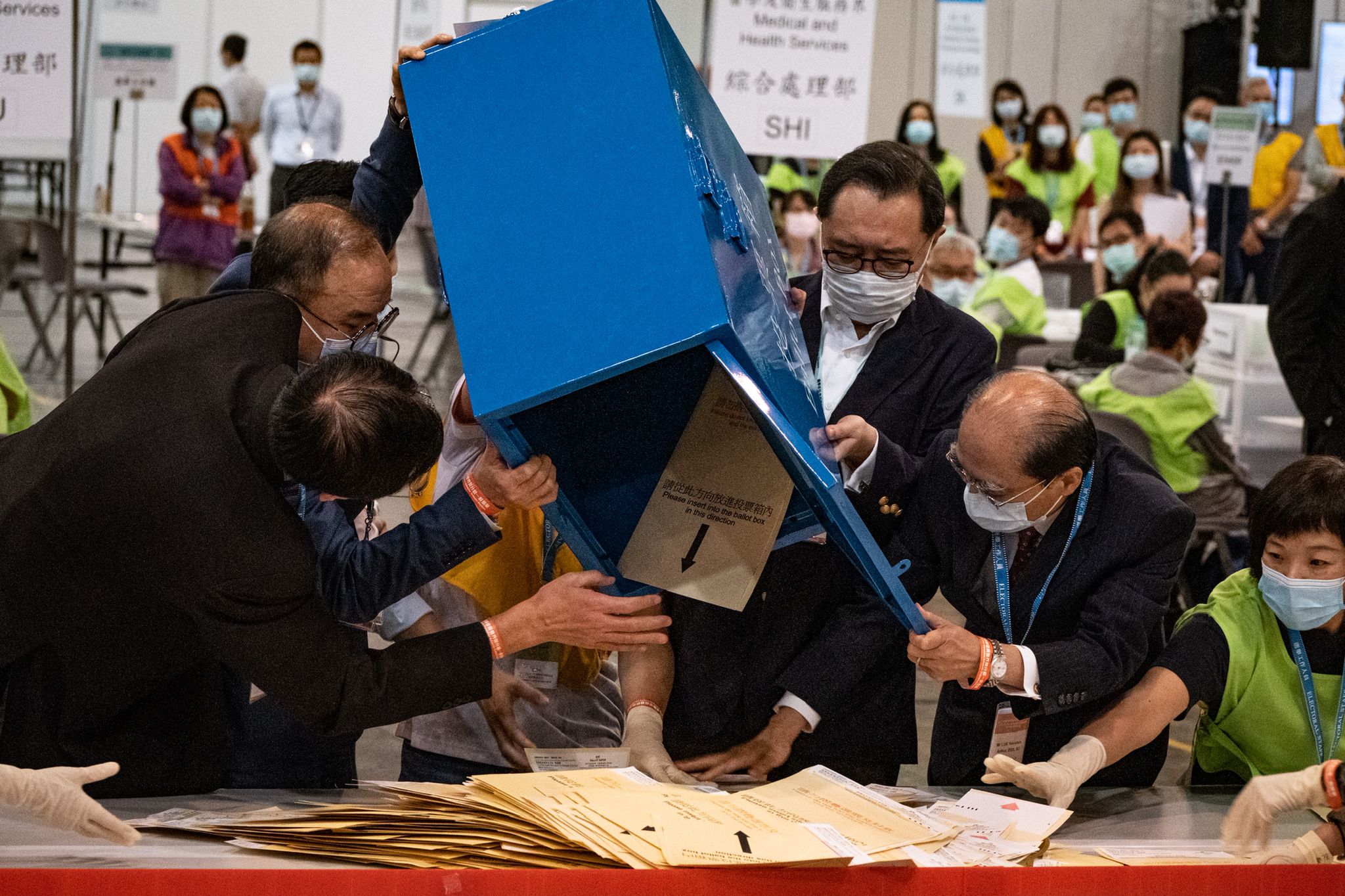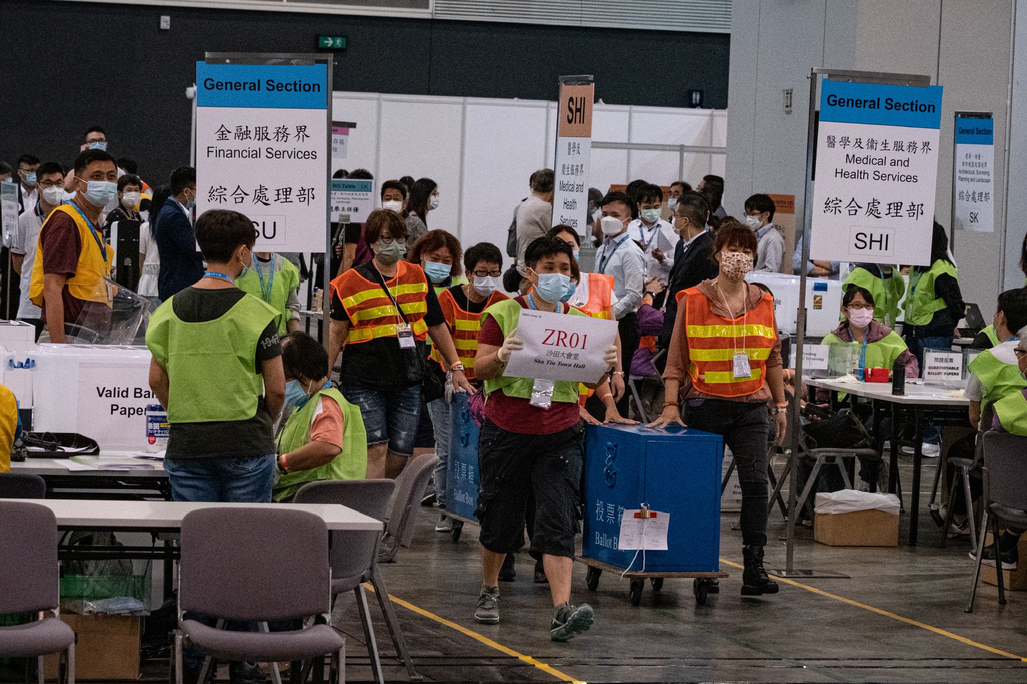 選舉委員會界別分組點票程序,周一凌晨12時40分,在會展的點票中心正式展開。截至清晨5時,仍未完成全部界別的點票工作。