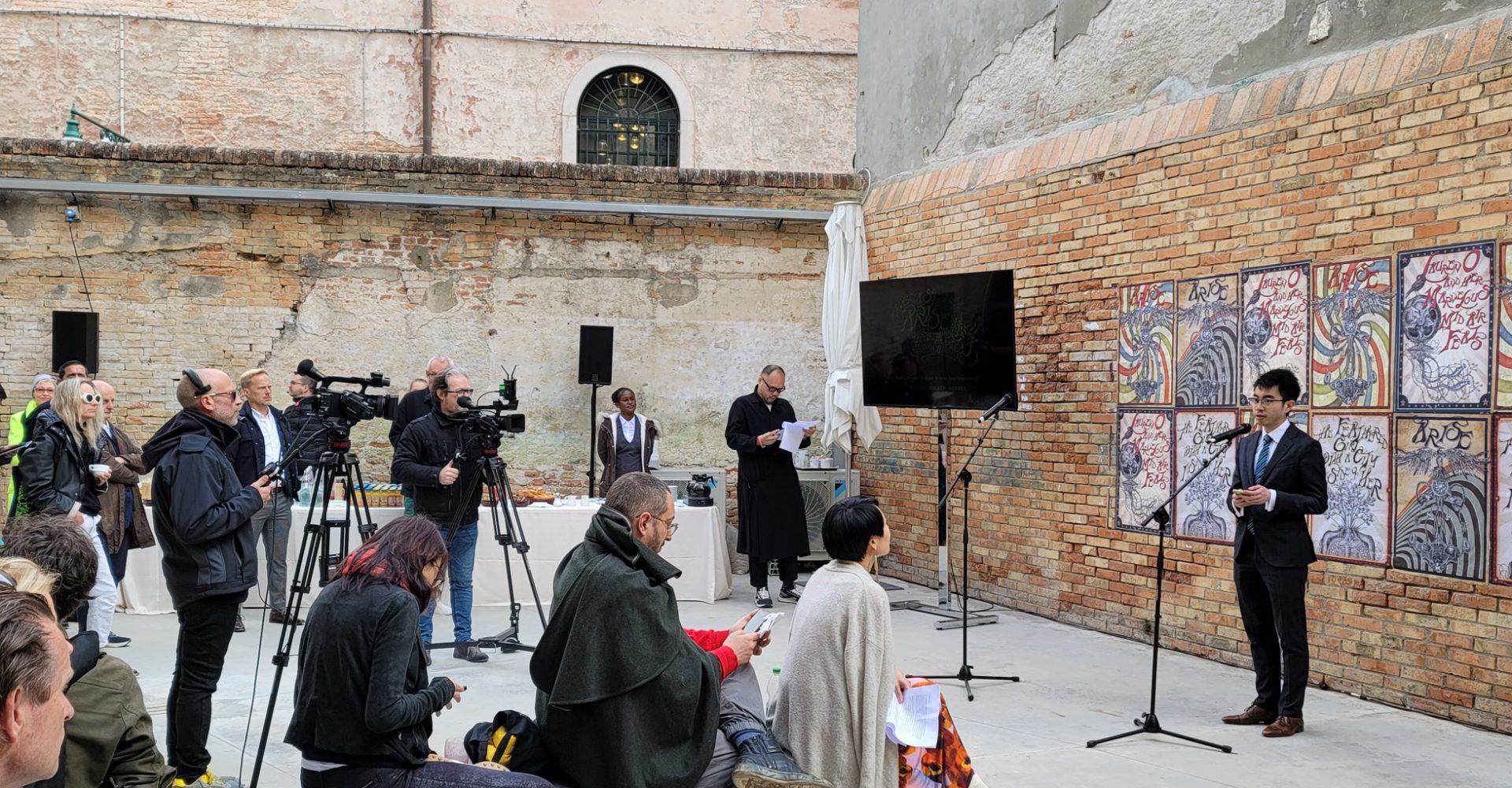 香港駐布魯塞爾經濟貿易辦事處副代表蔡禧揚,在威尼斯視藝雙年展香港館「徐世琪:懸浮,香港在威尼斯」外圍展的開幕酒會致辭。他表示,香港正迅速發展成為亞洲的文化中心,東西方文化交流匯聚,發展令人振奮。