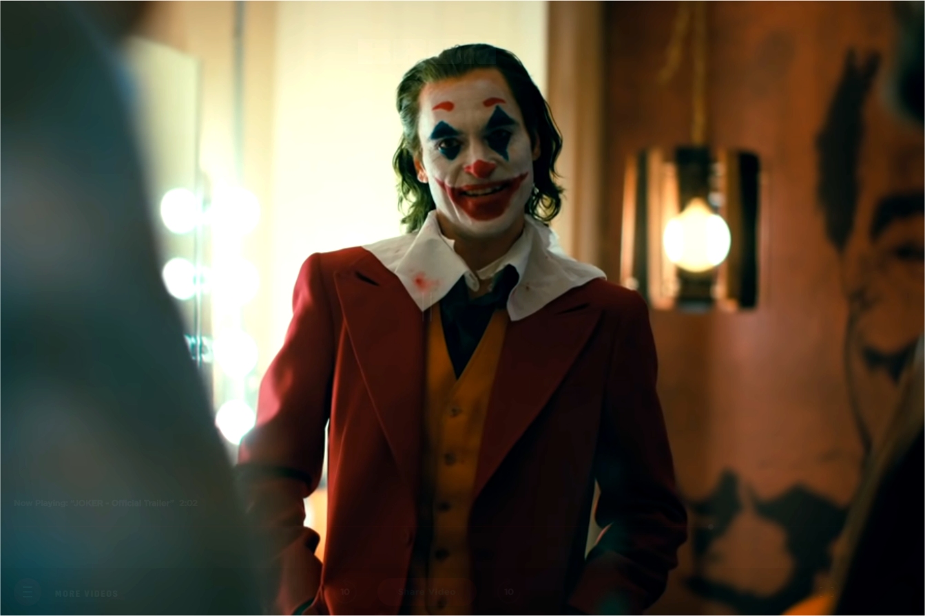 男主角小丑一開始殺了3個上流人士,然後殺了他自己的母親、同事、仰慕的偶像……小丑本來並亦不是處心積慮去殺人,而是因為他工作上遇到不如意事,加上主角患有情緒病,當他感到心情差的時候會不能自控地大笑。他當日被老闆辭退後,在地下鐵上大笑而引來3位社會上流人士的注意,當主角想澄清時已經被他們毆打,因此小丑用了同事給他的手槍槍殺了他們。