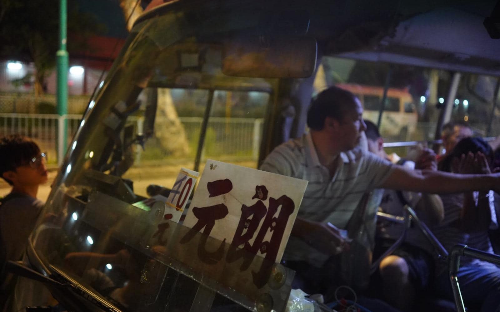防暴警員在元朗雍翠豪園外搜捕示威者,但未能進入屋苑,期間有住客未能入閘,有防暴警指管理員只准「暴徒」入內,亦有住客拍打記者鏡頭。