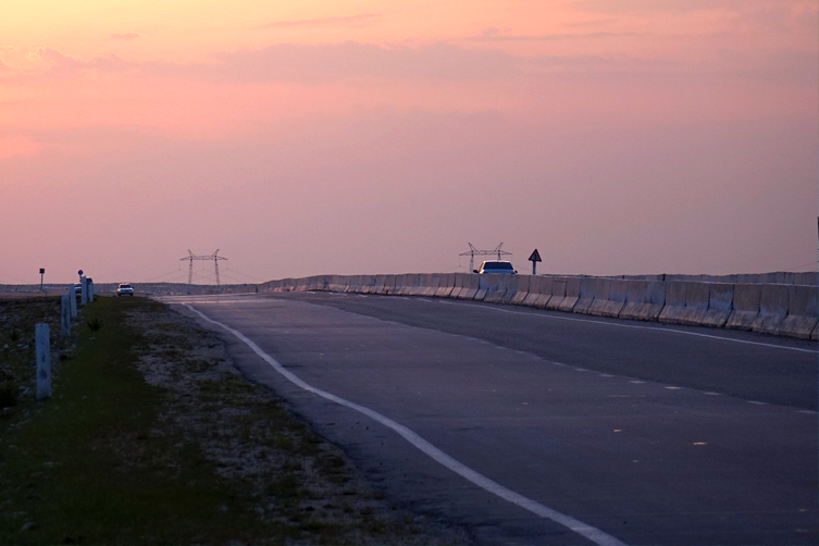 那是一個陽光藍天的下午,河面上吹來的風還是令人有點寒意,阿姆河河水運載的沙泥量很大,河水一片混濁,兩岸都是淤泥沙洲,頗有黃河河套景象。浮橋右幾百米處正在動工興建一座高聳的跨河公路橋,橋墩已豎好,只剩下接駁橋面的工程。