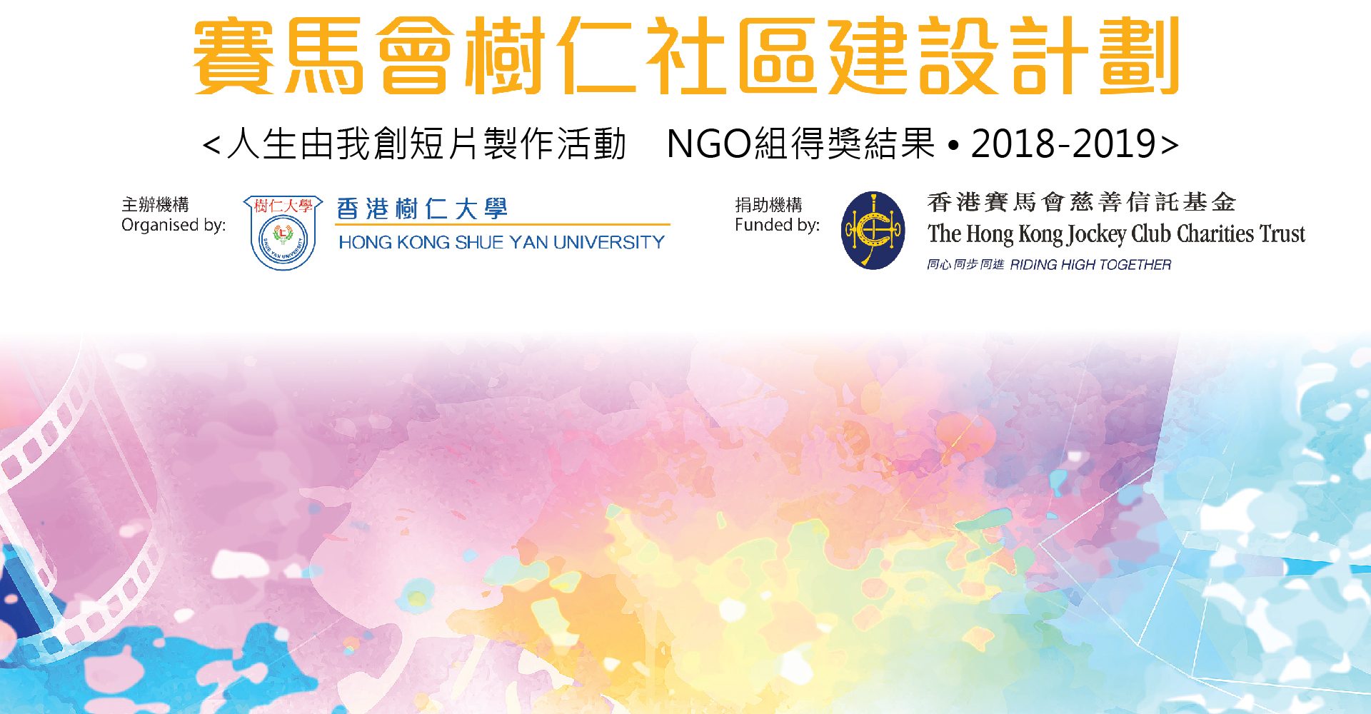 由香港賽馬會慈善信託基金捐助,香港樹仁大學主辦的「賽馬會樹仁社區建設計劃」<人生由我創>短片製作活動 (NGO組) (下稱「活動」) 已圓滿結束!活動旨在鼓勵青年透過參與拍攝製作,提升自信及關心社會,確立人生目標與方向,為未來生涯規劃作準備。在過去一年,合共有29間NGO、39隊製作團隊、60名社工,以及超過230名青年人參與是次活動。主辦方香港樹仁大學安排製作業界人士為參加者提供講座及工作坊,以及拍攝場地、設備等等的專業指導及支援;活動及拍攝亦有樹仁學生參與其中,提升參加者的技術及信心。