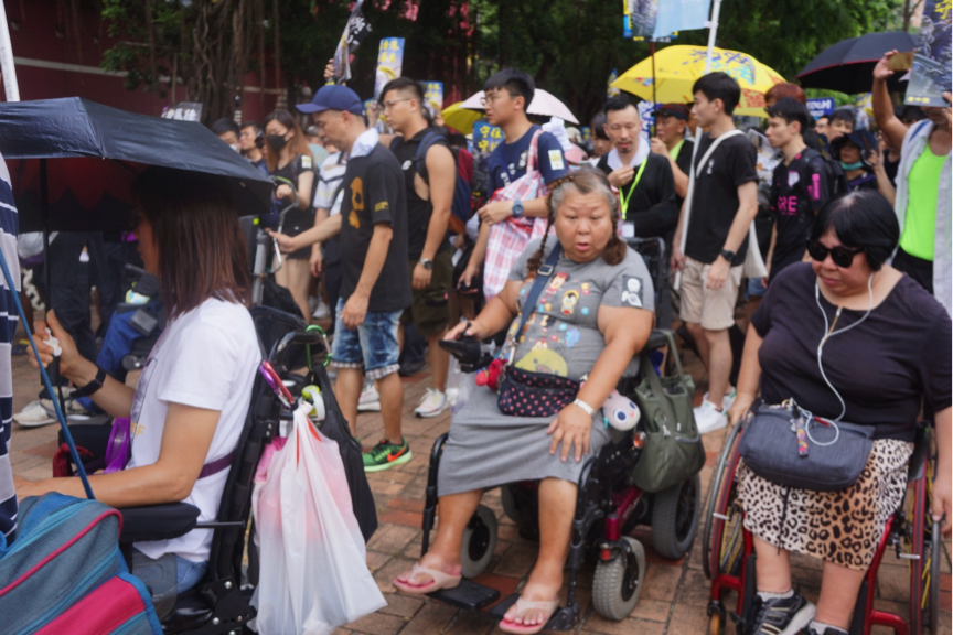 由六月初夏開始,《逃犯條例》修訂草案引起軒然大波,網民號召接力舉行「十八區大遊行」。遊行人士以年輕及中年人為主力。星火燎原,輪椅人士和小孩看似微不足道,但也用自己的力量為香港發聲。