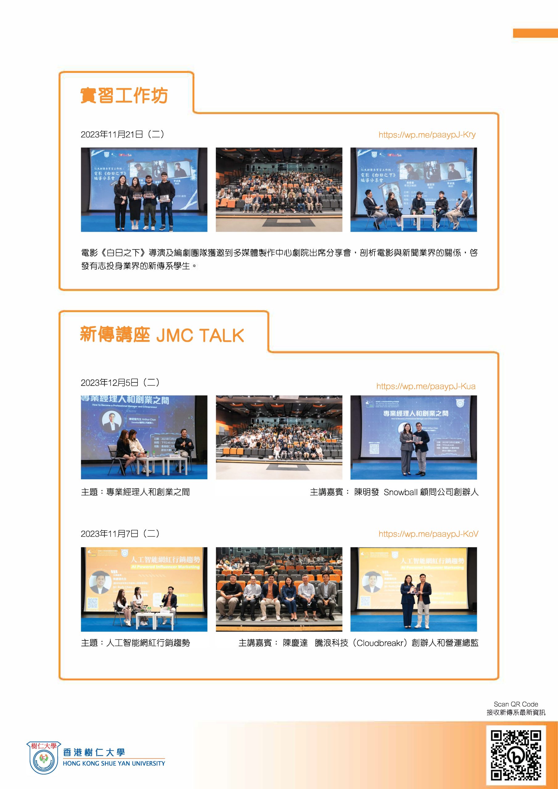 校園活動樹仁新傳月報編輯推介 【樹仁新傳月報】2024年1月號 January 29, 202404532 香港樹仁大學新聞與傳播學系刊出《樹仁新傳月報》一月號,新傳校友、香港科技大學環球事務及傳訊處公共事務及傳訊部助理經理(公共及新聞事務)鄺曉斌撰文分享,時代在變,時刻提醒自己要擇善固執,不論在傳媒業還是傳訊業,懂得臨時變動之餘,也要保持求學求知的心「揸緊宗旨」。 《樹仁新傳月報》一月號,第一頁。 《樹仁新傳月報》一月號,第二頁。 Related Related tags : Cloudbreakr唐翠萍李卓風白日之下簡君晋鄺曉斌陳慶達陳明發騰浪科技 仁大「感受武者的傳播功力」展覽 Previous Post 民眾安全服務隊將為教大學生推出體能紀律及領導等學習活動 Next Post