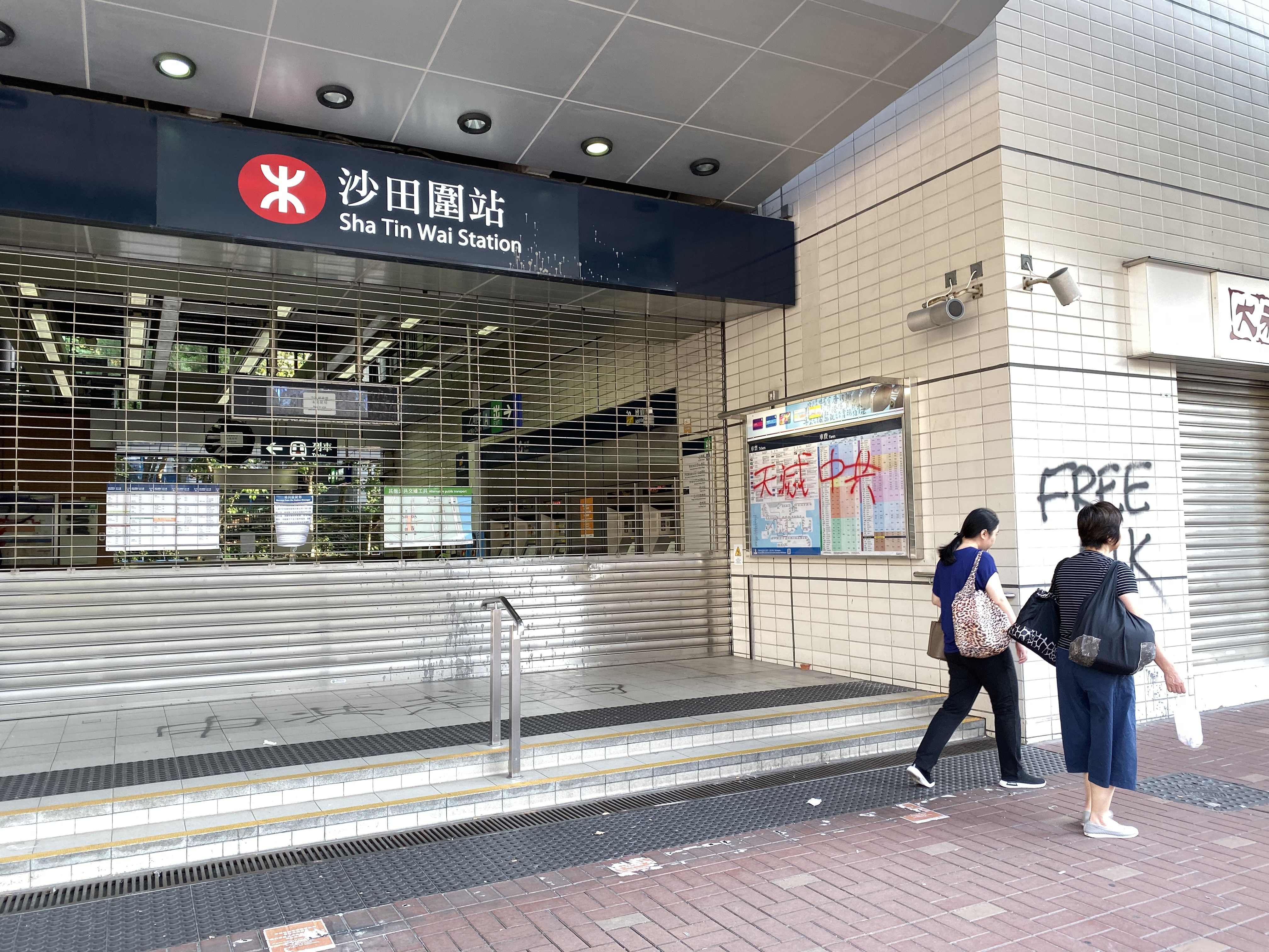 十月香港,社會動盪,政府援引《緊急法》實施《反蒙面法》。法例生效首日,港鐵全綫停駛,即使置身「風暴圈」外的馬鐵車站,例如沙田圍站都遭受破壞,上山前留影作為歷史憑證。