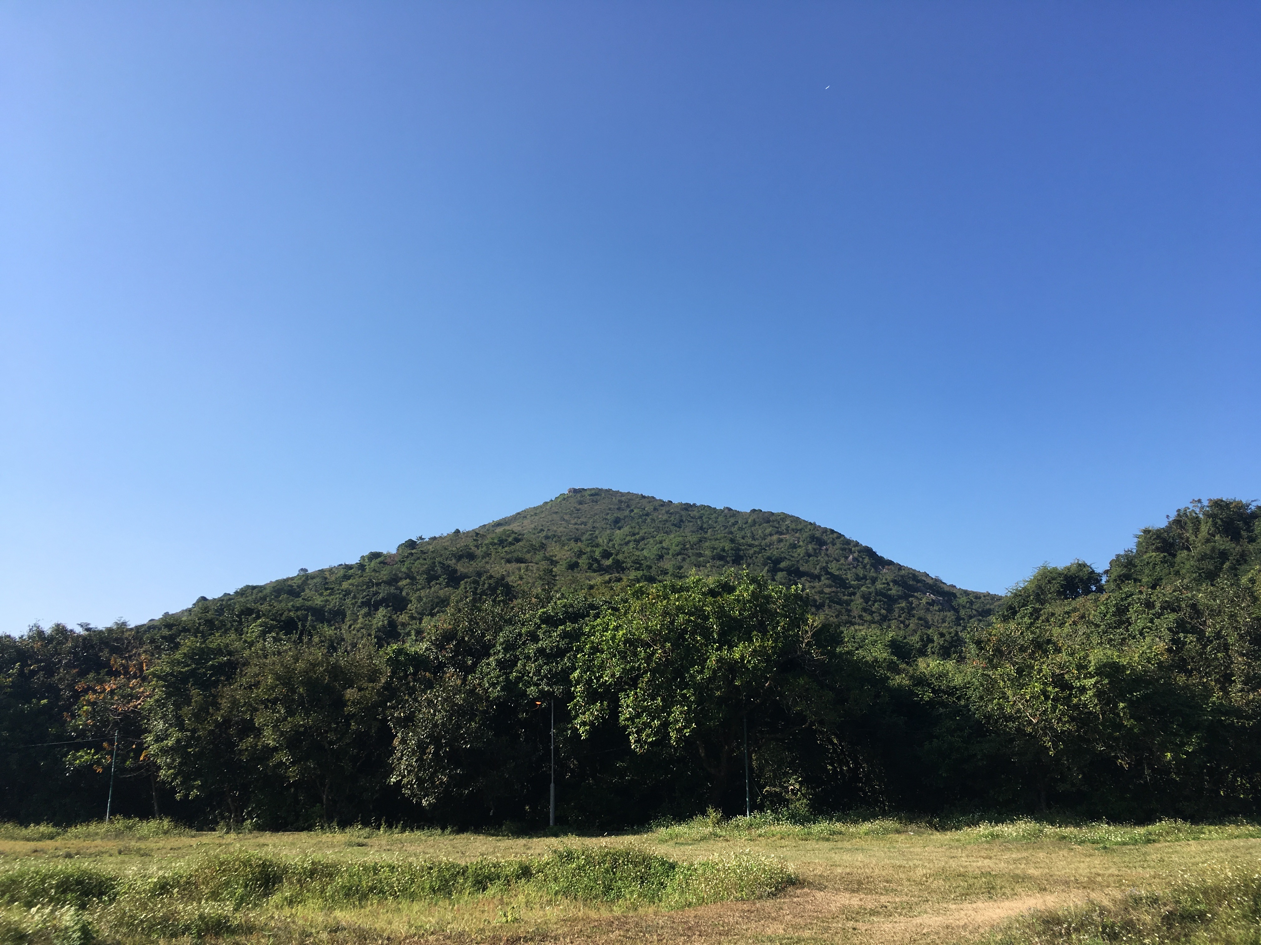 原來,小山之路絕不好走。看地政總署的郊區地圖,在深涌灣旁未有路線上山頂。於是,走過頹垣地帶,再在山谷位置上山。草,實在太密,即使近在咫尺的標高柱,只在180米的高度,跟同行山友最後竟要花兩小時推進,全程被草包圍!可謂變成「草間人命」,雙手「劃痕」累累。