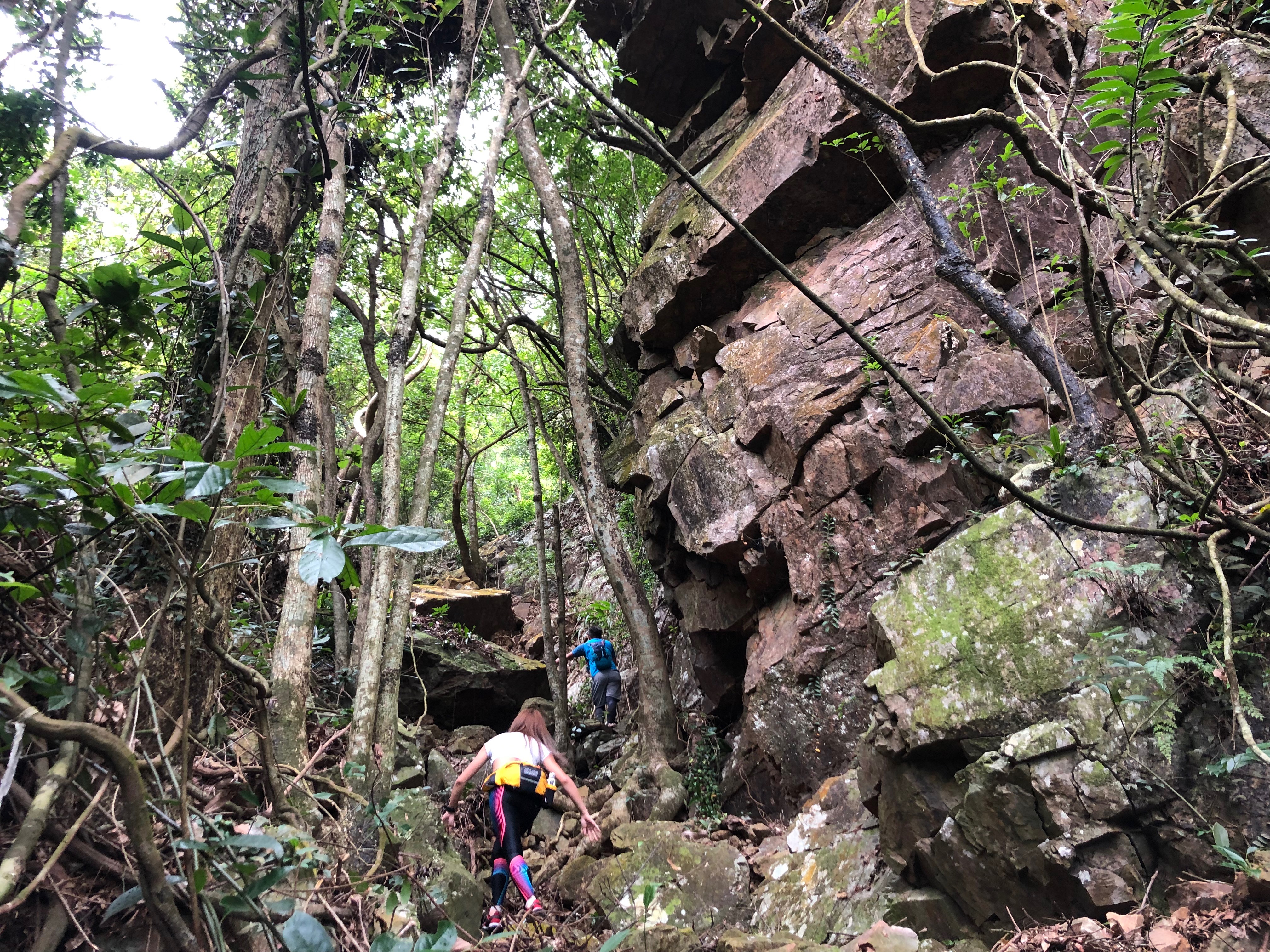 之後較為密林,需要攀石而上。穿過「彌天棧道」向上行,賞過「赤淵」及「人在天涯」等馳名直壁,最後穿過「象門」,感覺就像走上大嶼山的「南、北天門」一樣,此處既然可望西貢,不如就叫「西天門」吧。