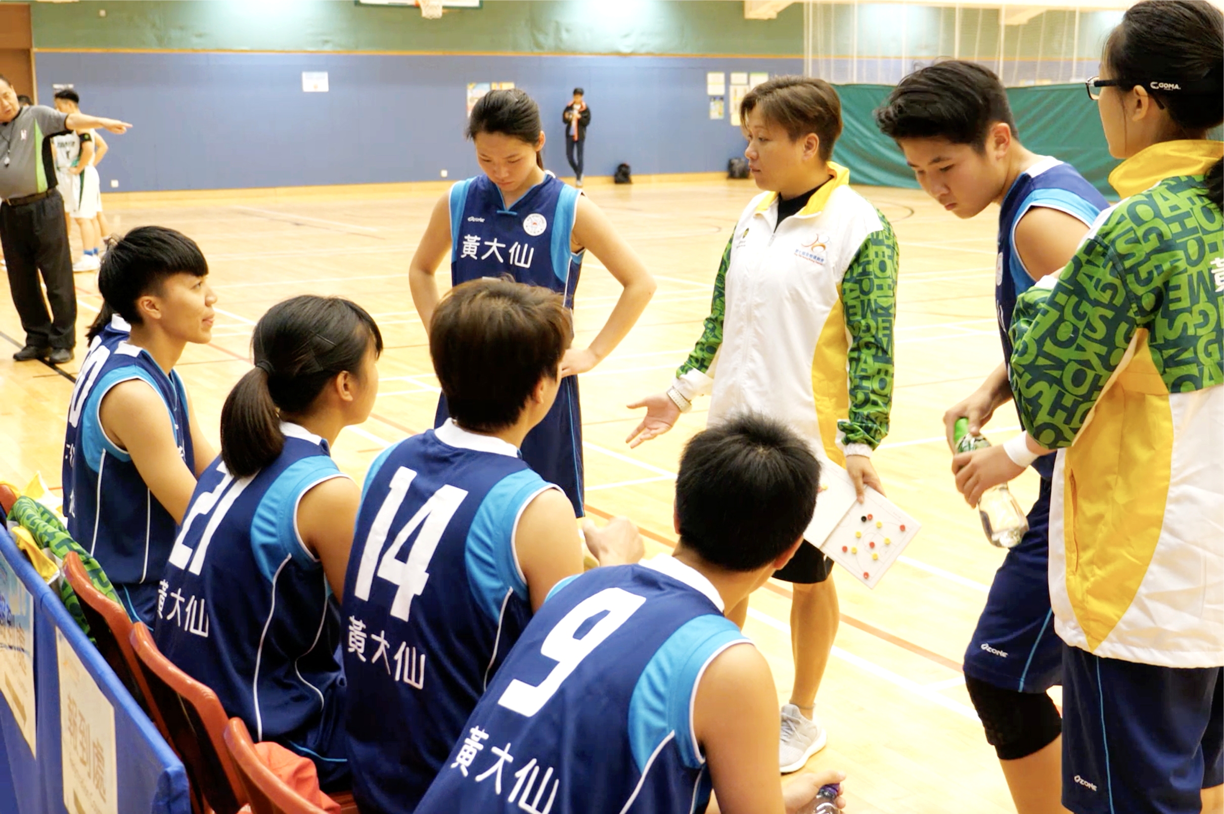 在一個陽光燦爛的早上,記者來到葵涌林士德體育館。在中午,這裏會舉行第7屆全港運動會女子籃球賽比賽初賽——黃大仙區隊對荃灣區隊。比賽開始後,黃大仙區隊一直領先,但到第四節,荃灣區隊把握數個進攻機會,拉近了比數。此時,身兼香港女子籃球隊總教練的黃大仙區隊教練官健好,要求暫停,調整隊員心態和戰術,最後以55:38勝出。