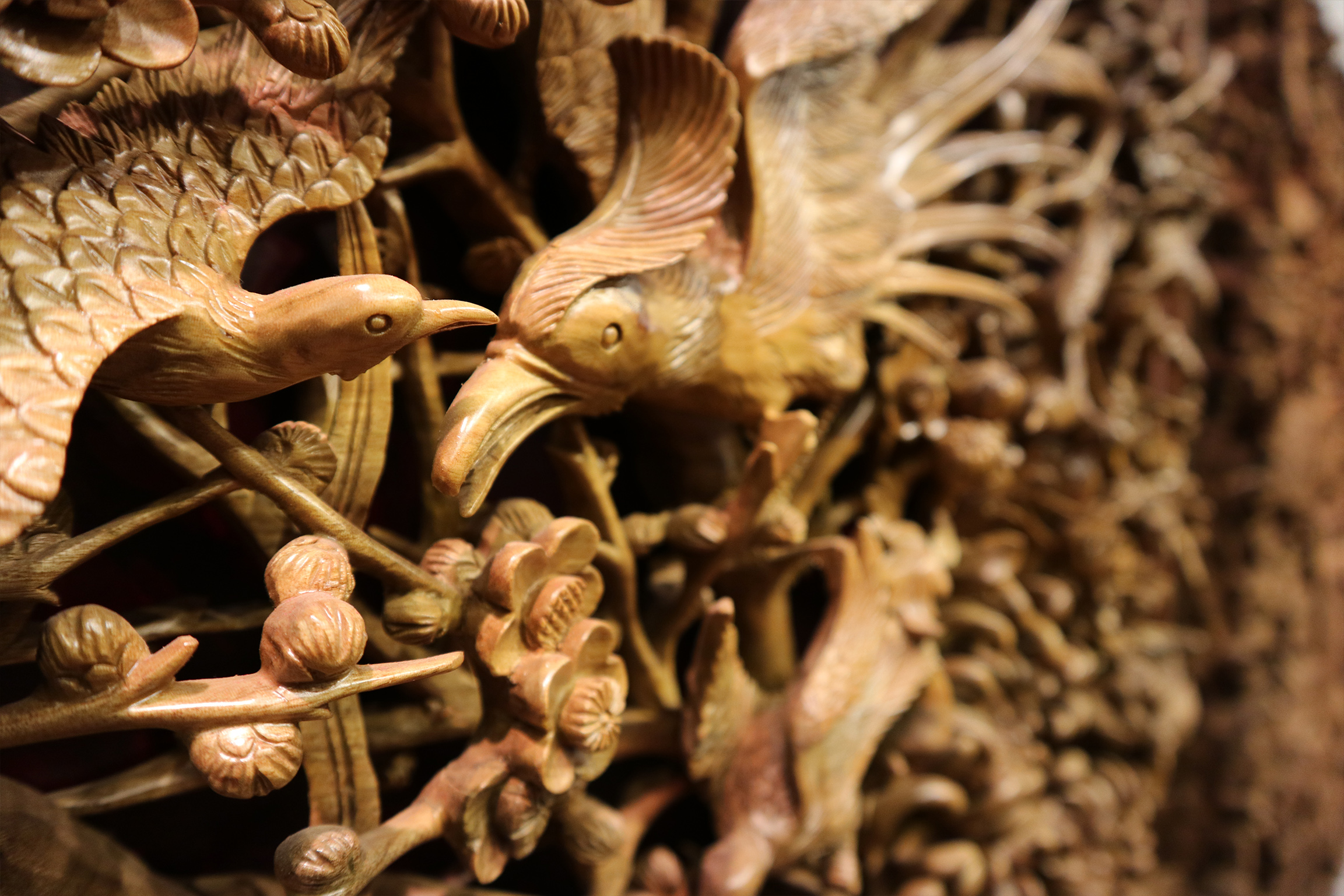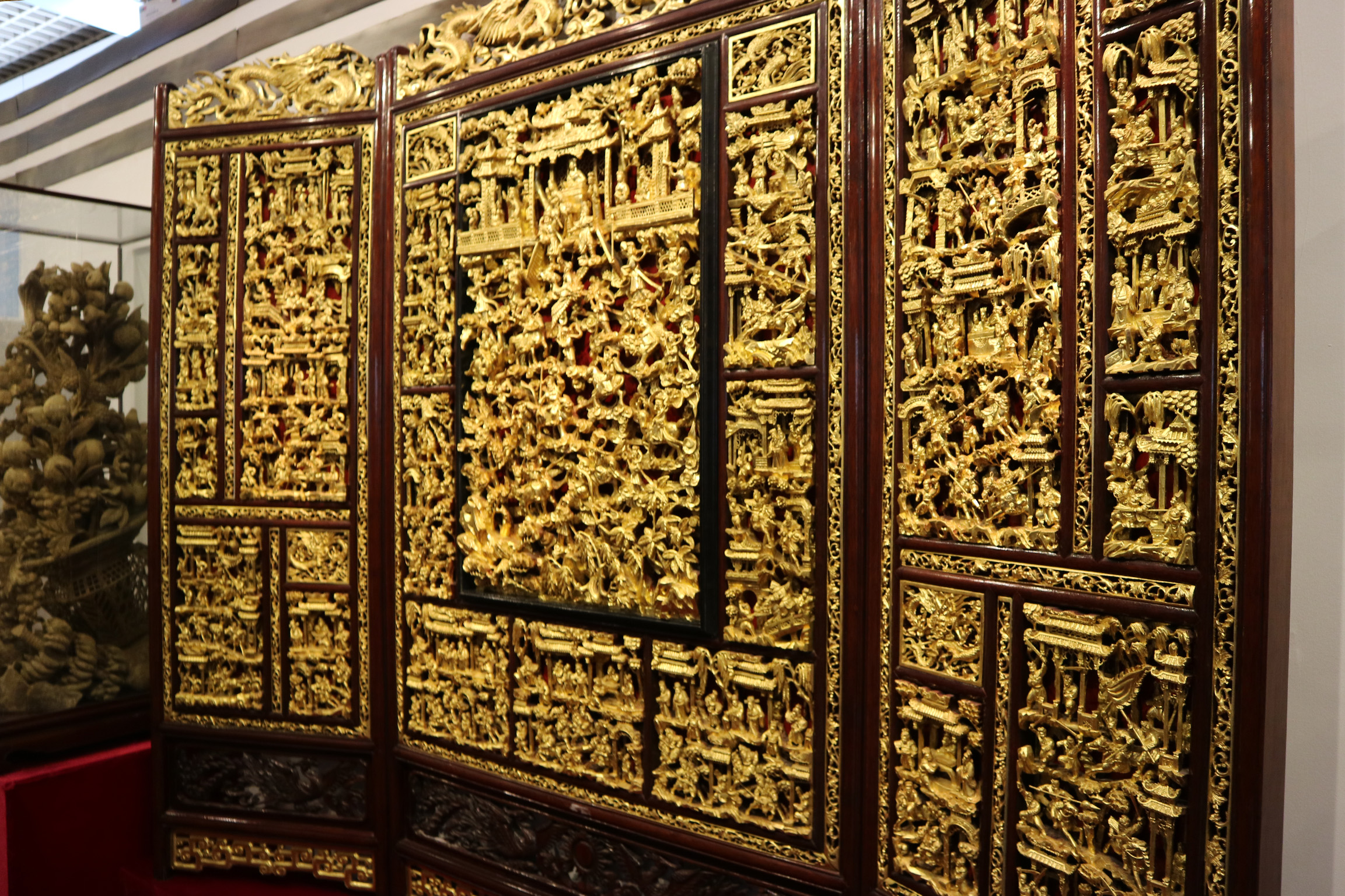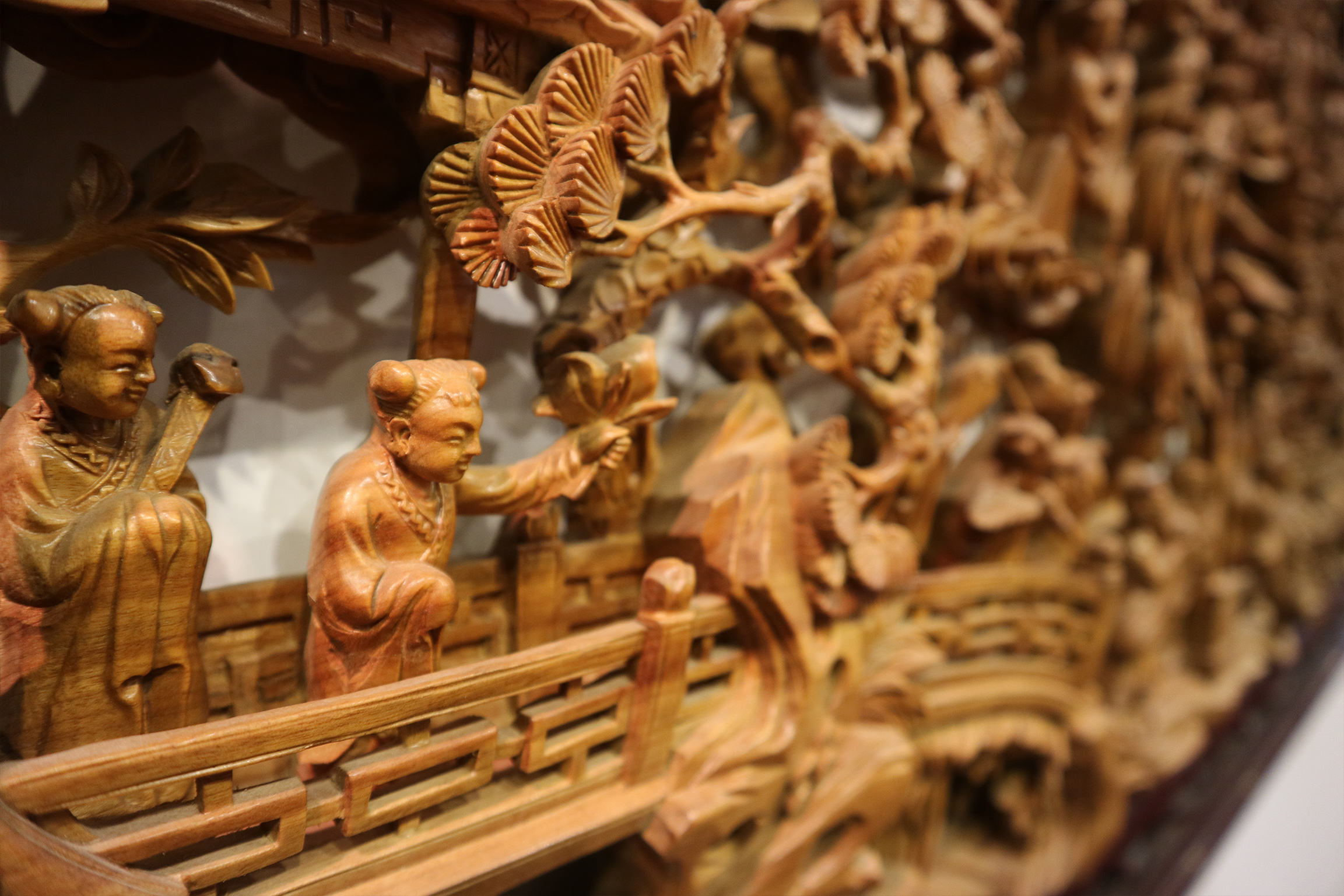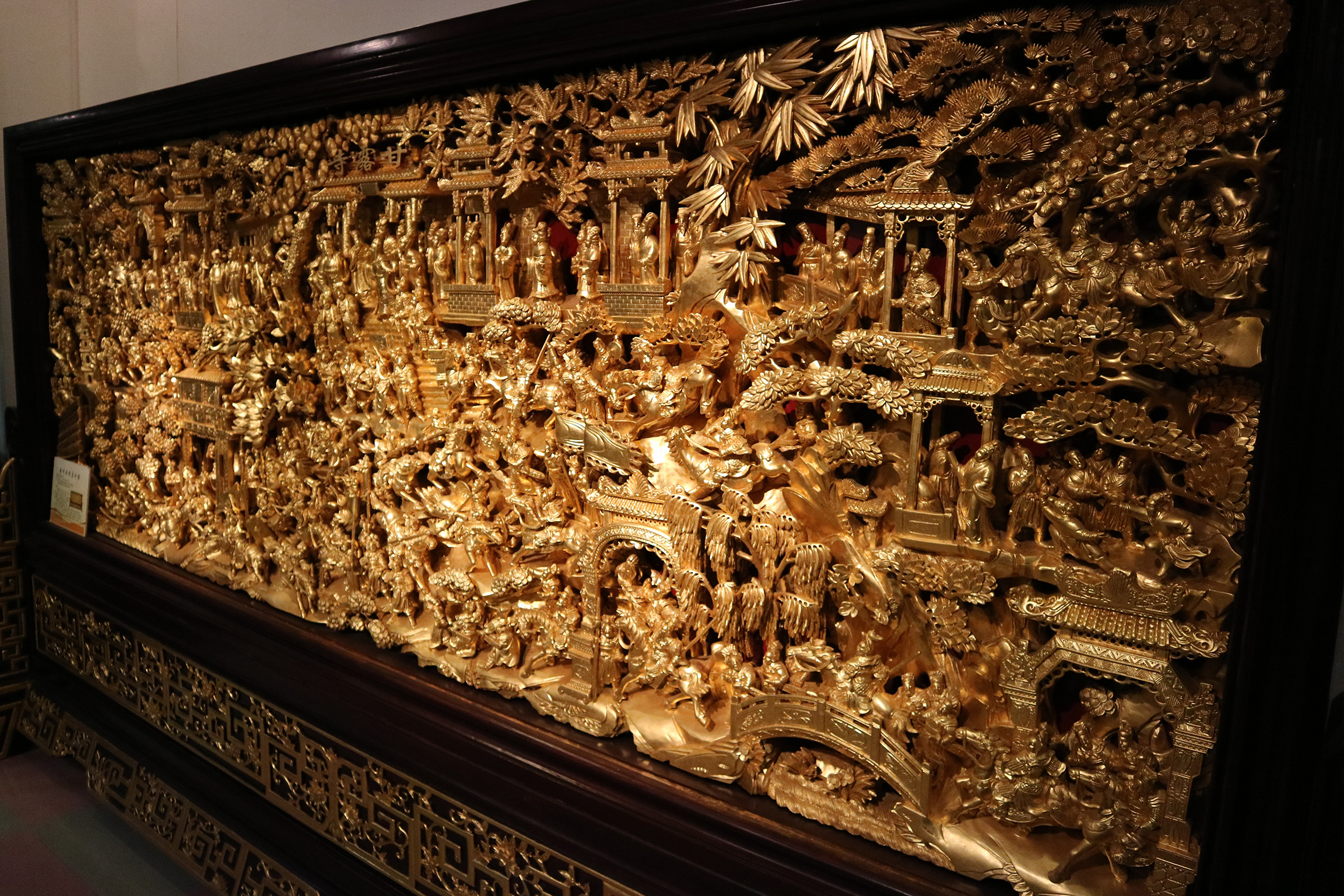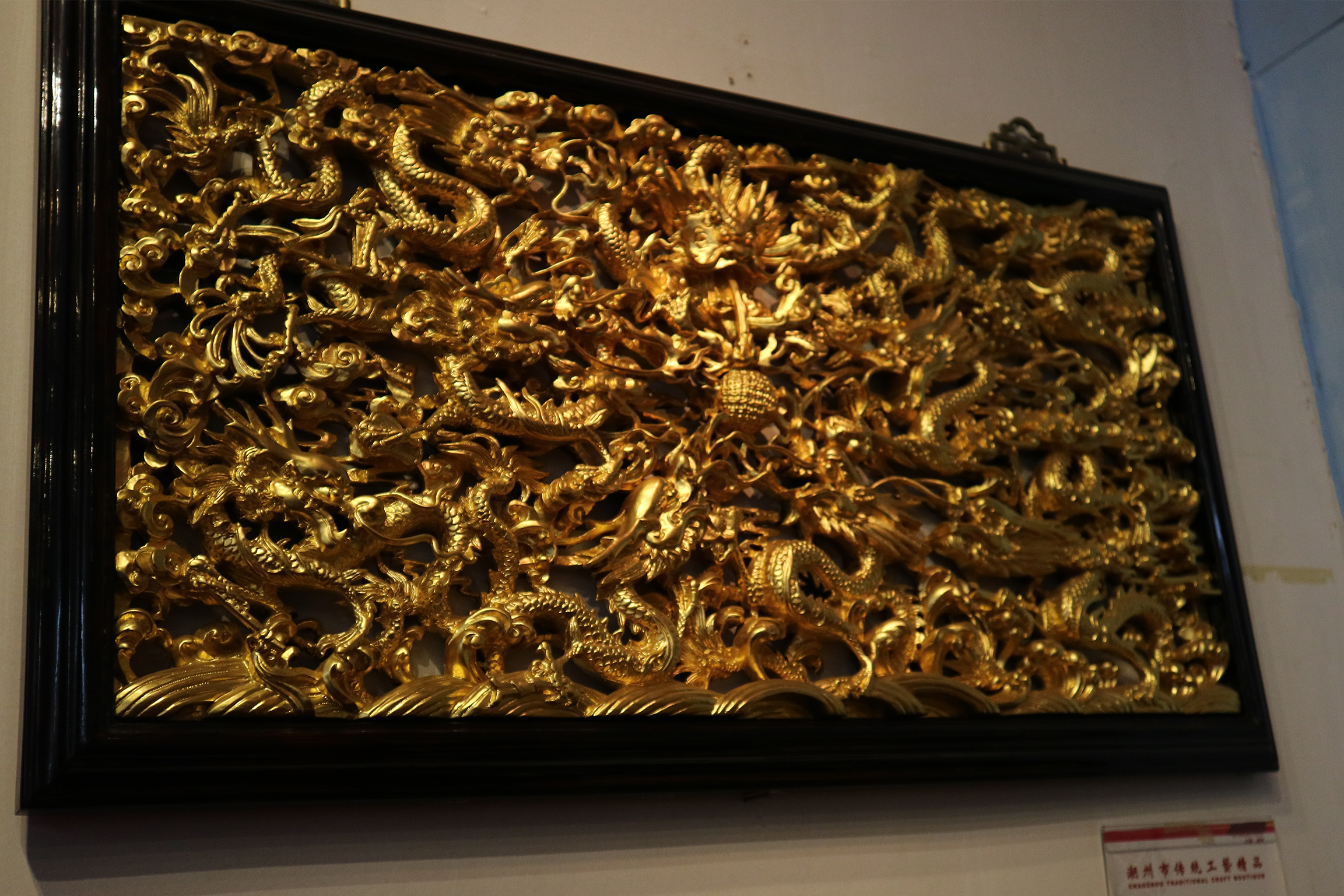 潮州木雕素以精巧著稱,其中金漆木雕聞名海外。這次到訪的辜柳希工作室,放置了很多國家級非物質文化遺產傳承人辜柳希大師的作品。鏤空的設計鬼斧神工,是潮州木雕最大特色。