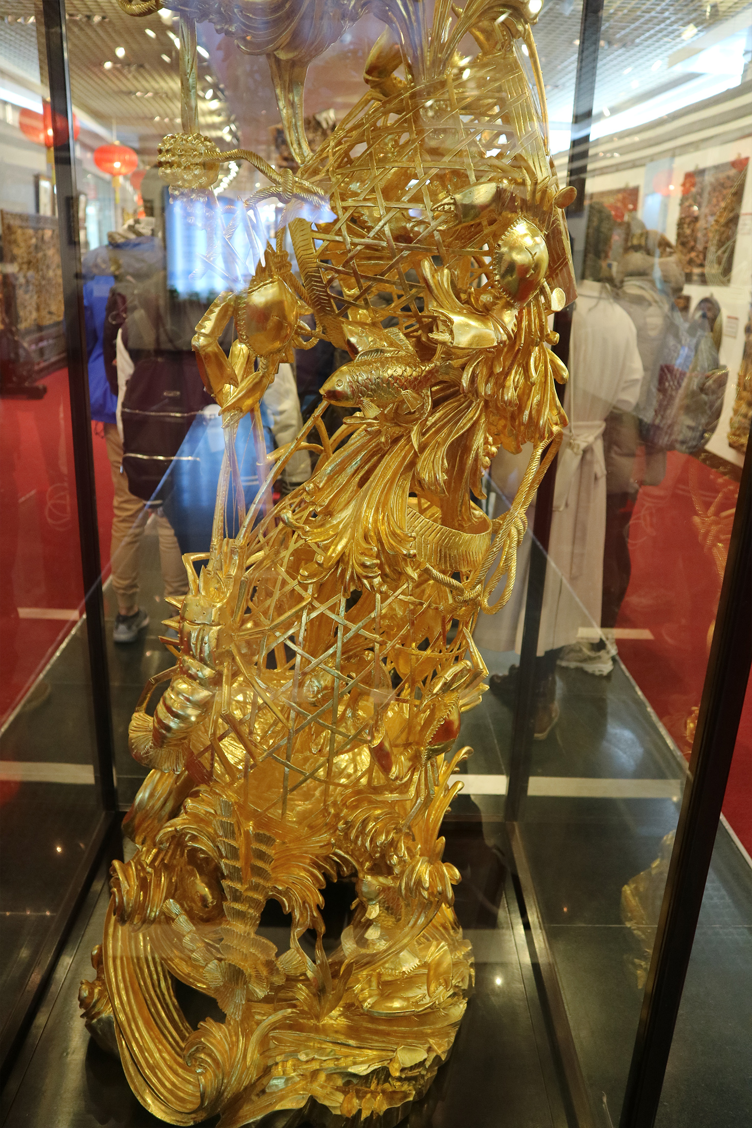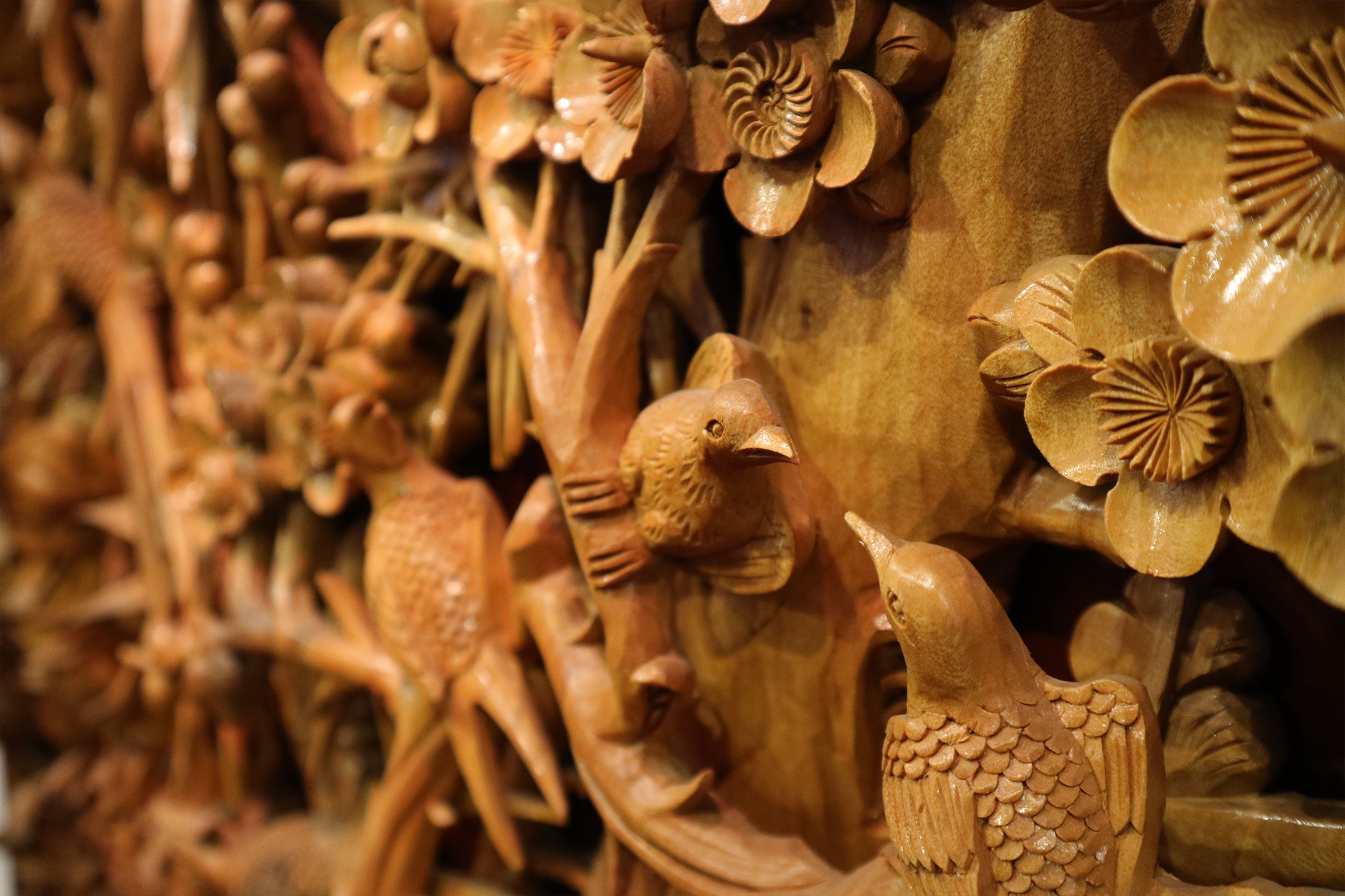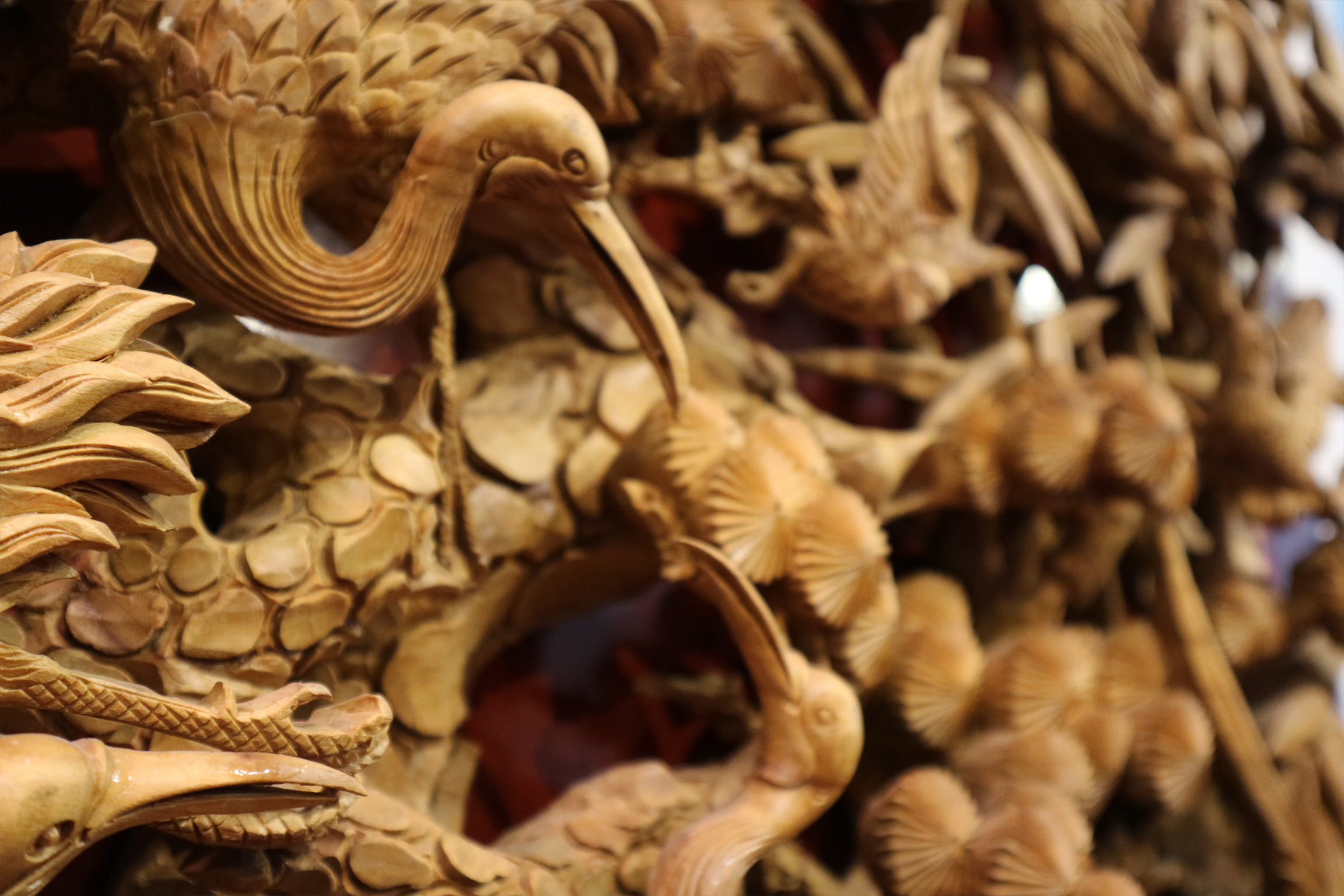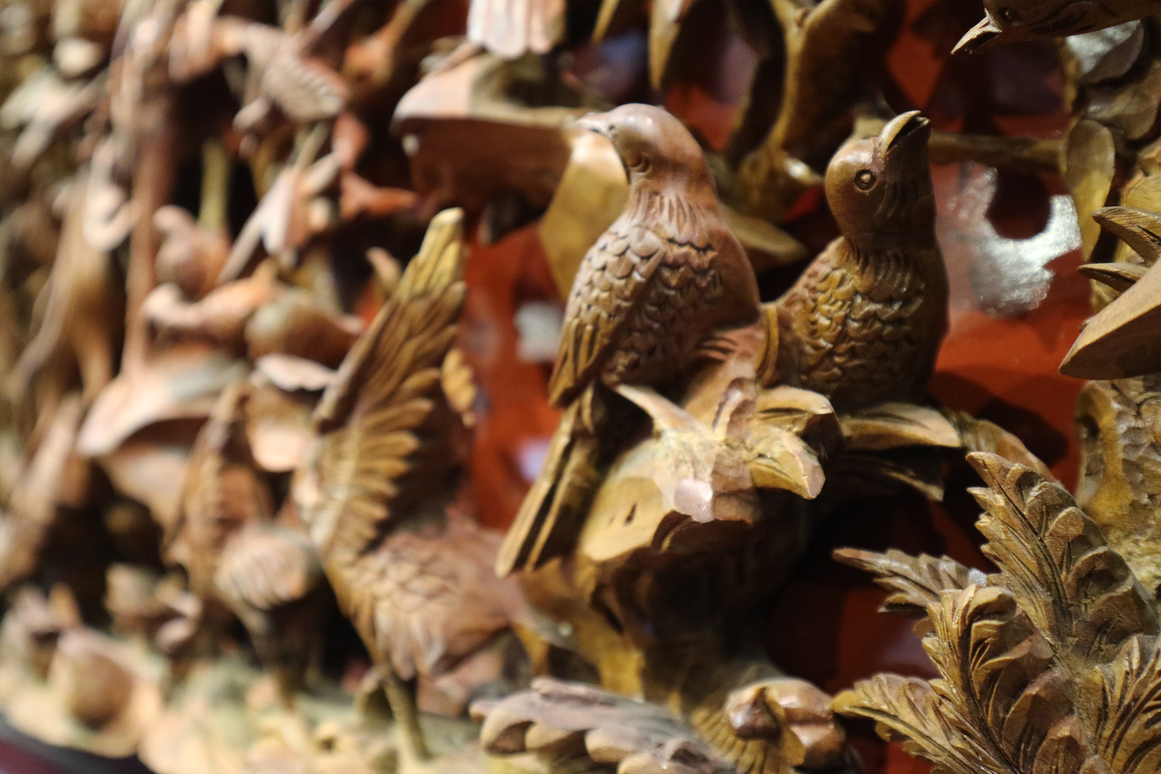 潮州木雕素以精巧著稱,其中金漆木雕聞名海外。這次到訪的辜柳希工作室,放置了很多國家級非物質文化遺產傳承人辜柳希大師的作品。鏤空的設計鬼斧神工,是潮州木雕最大特色。