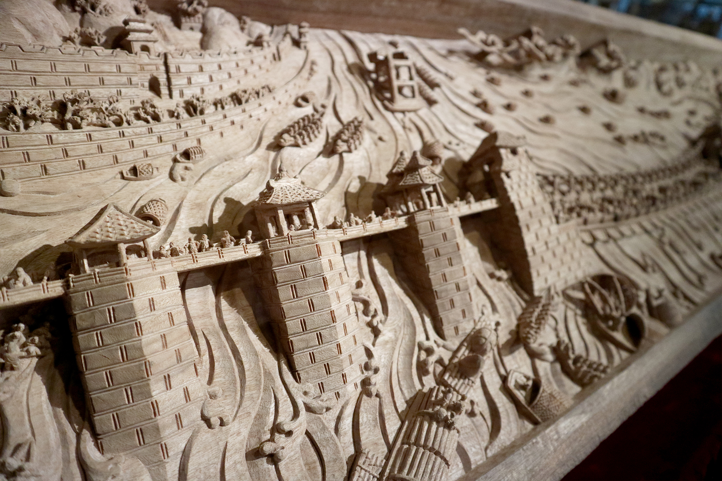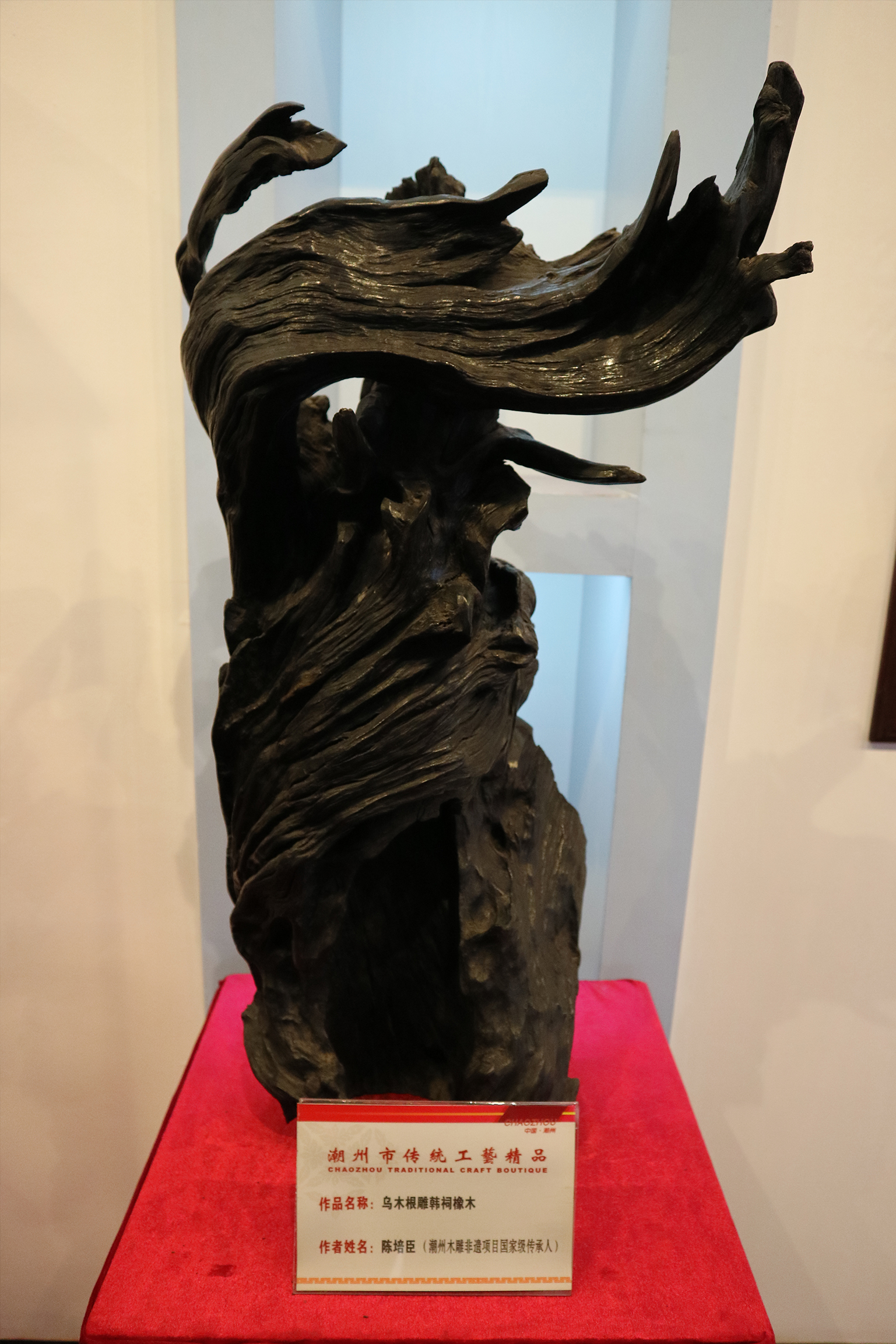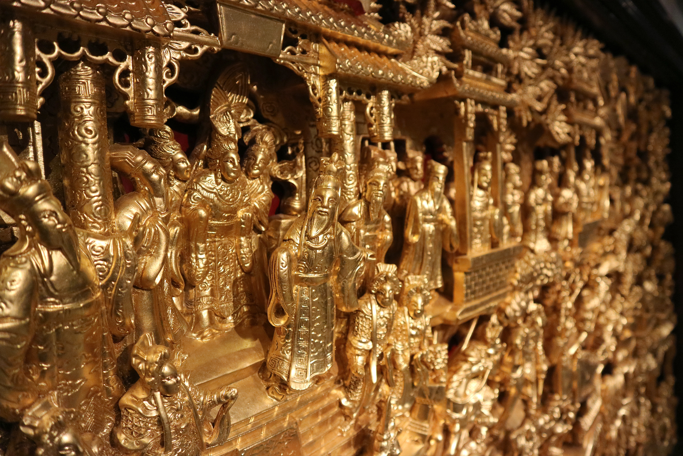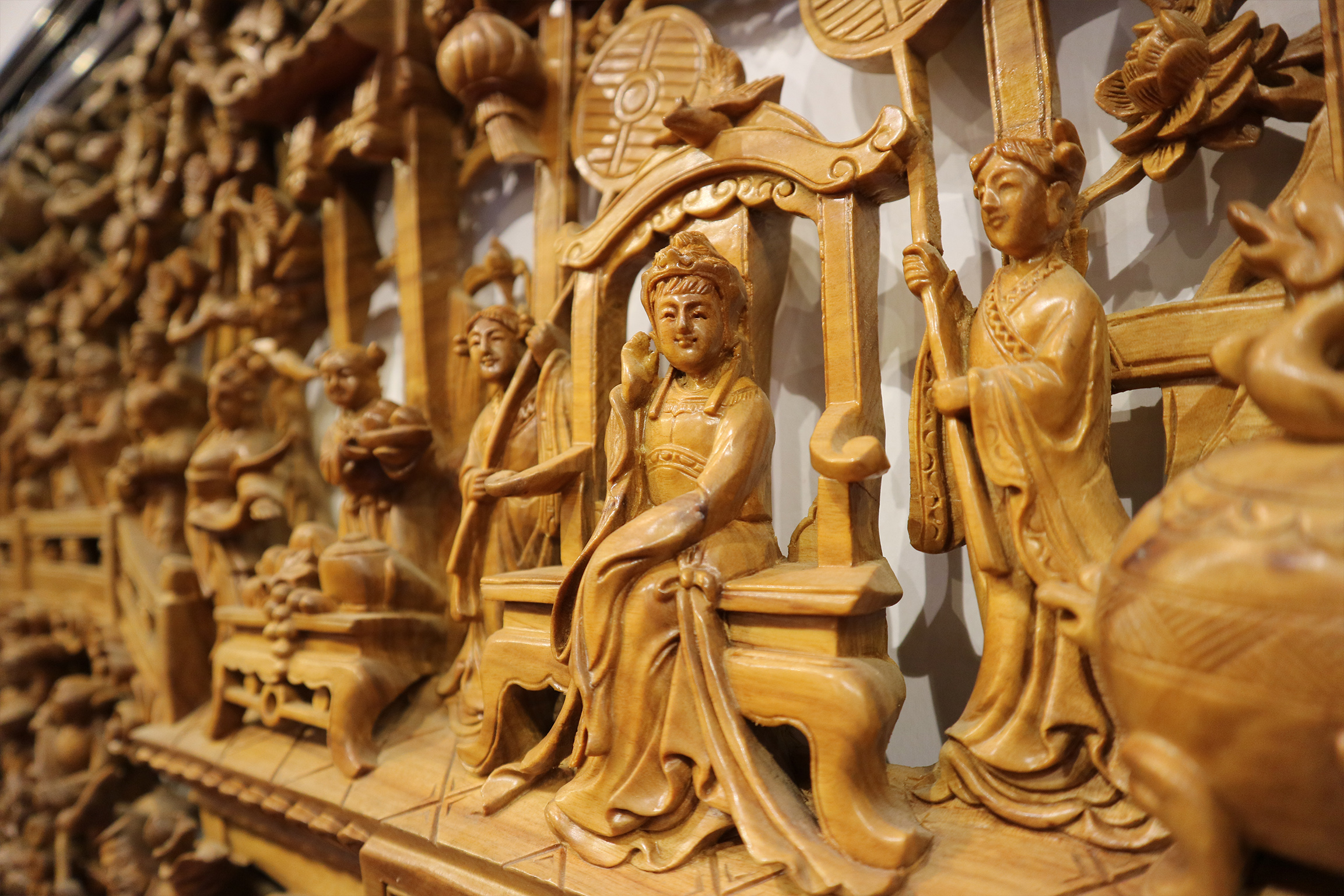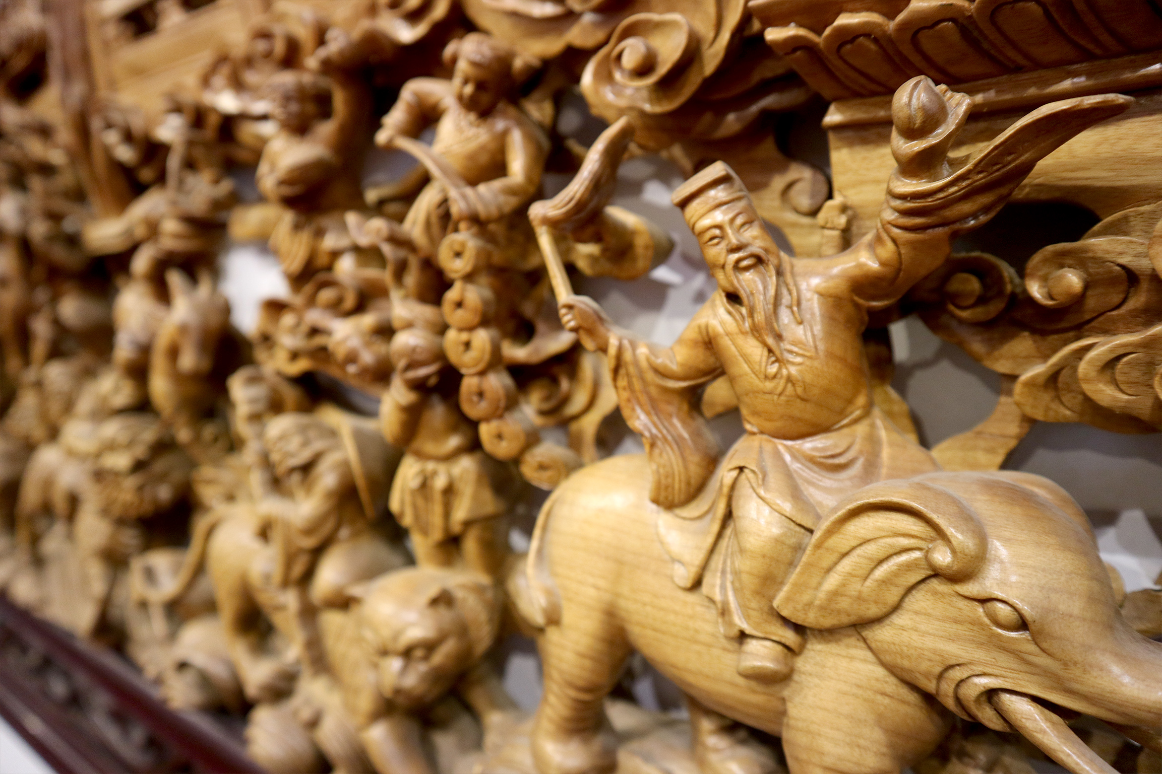 潮州木雕素以精巧著稱,其中金漆木雕聞名海外。這次到訪的辜柳希工作室,放置了很多國家級非物質文化遺產傳承人辜柳希大師的作品。鏤空的設計鬼斧神工,是潮州木雕最大特色。